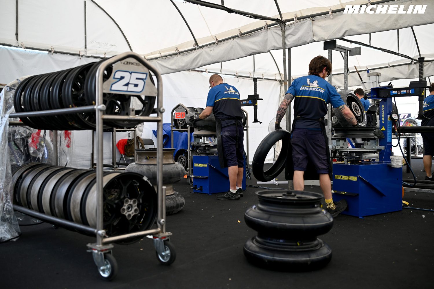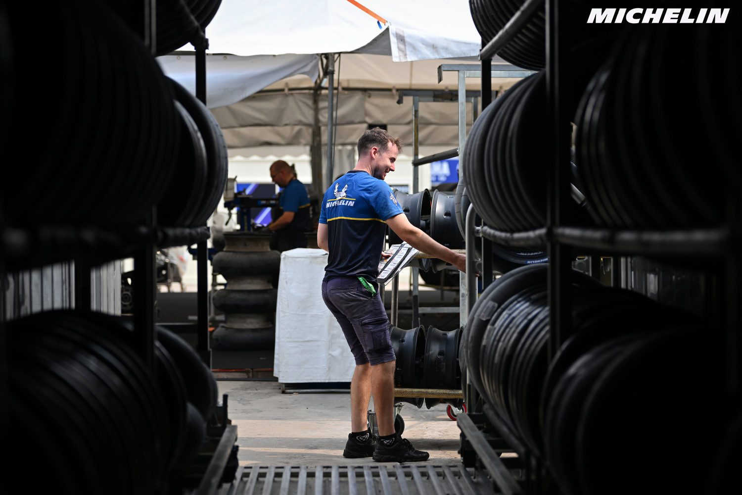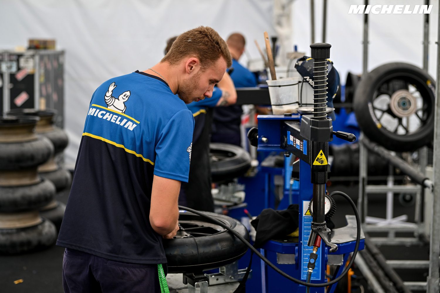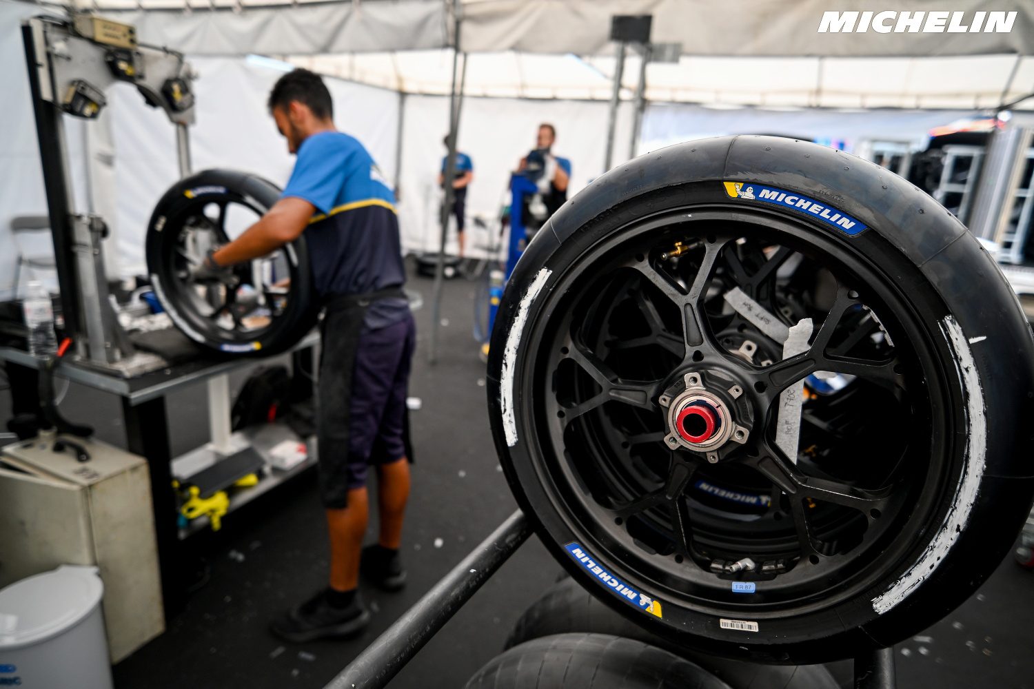 ในฐานะผู้จัดหายางอย่างเป็นทางการของโมโตจีพี มิชลินเตรียมยางซีรีส์ ‘พาวเวอร์ สลิค’ (MICHELIN Power Slick ) สำหรับพื้นแห้ง และ ‘พาวเวอร์ เรน’ (MICHELIN Power Rain) สำหรับพื้นเปียก ครบถ้วนพร้อมรองรับทุกสภาพแทร็กตลอดสุดสัปดาห์ของการแข่งขัน โดยมีทีมปฏิบัติการภาคสนามของมิชลิน 24 คน ซึ่งประกอบด้วยนักพัฒนาผลิตภัณฑ์ 2 คน, ช่างเทคนิค 6 คน, ช่างประกอบติดตั้งยาง 10 คน, ผู้จัดการและเจ้าหน้าที่ประสานงาน 1 คน, เจ้าหน้าที่ประชาสัมพันธ์ 2 คน และเจ้าหน้าที่สื่อสารการตลาด 3 คน ประจำการให้การสนับสนุนทีมแข่งอย่างใกล้ชิด ตั้งแต่การติดตั้งยาง ตรวจสภาพ บันทึกข้อมูล วิเคราะห์ประสิทธิภาพ ให้คำแนะนำการตั้งค่า ไปจนถึงการสนับสนุนทางเทคนิคแบบเรียลไทม์ เพื่อคงไว้ซึ่งความปลอดภัย ความน่าเชื่อถือ และความเป็นเลิศในระดับการแข่งขันอย่างสม่ำเสมอภายใต้สภาวะที่ท้าทายของการแข่งขัน