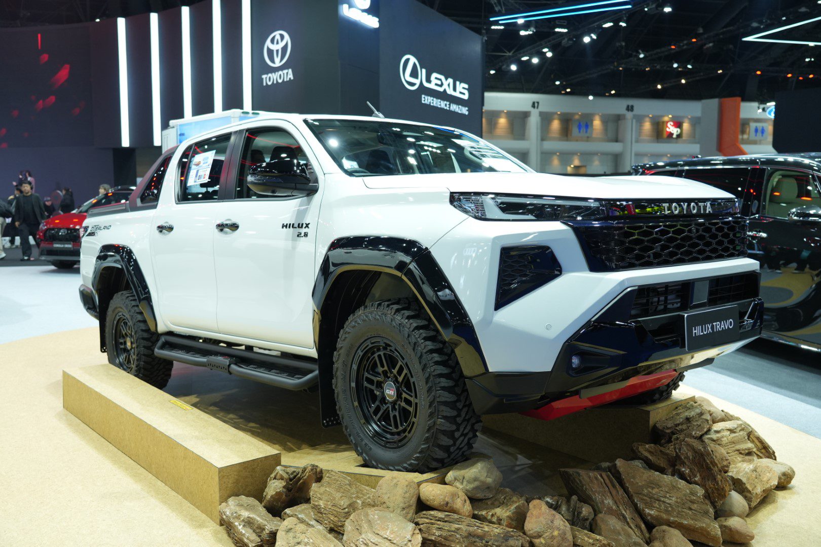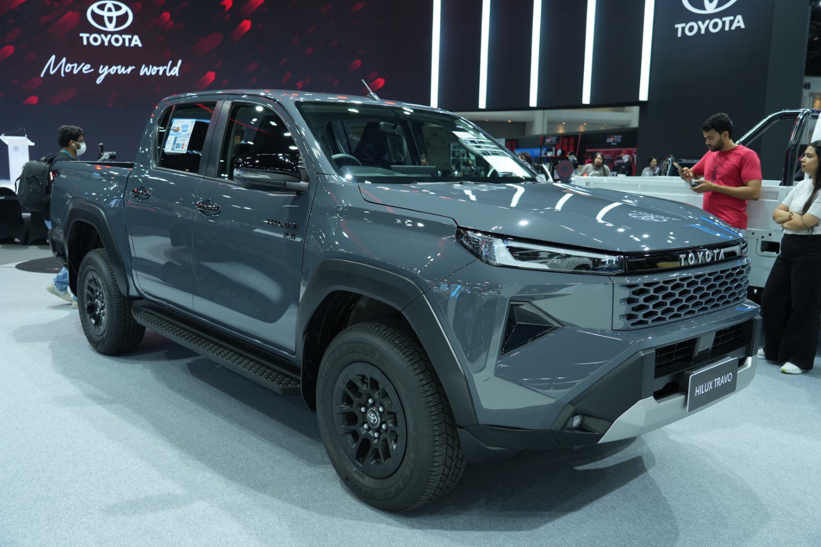 มร.โนริอากิ ยามาชิตะ แนะนำโซนรถเพื่อการพาณิชย์และการใช้งานส่วนบุคคลว่า “ลำดับถัดมา คือ Toyota Hilux Travo และ Toyota Hilux Travo‑e ซึ่งเปิดตัวในปีที่ผ่านมา เช่นเดียวกับ Toyota Land Cruiser FJ ทั้ง Hilux Travo และ Hilux Travo‑e ต่างสะท้อนถึงบทบาทสำคัญของโตโยต้าในการสนับสนุน และพัฒนาอุตสาหกรรมยานยนต์ของประเทศไทย ไม่ว่าจะเป็น ด้านการผลิต การจ้างงาน และการสร้างมูลค่าทางเศรษฐกิจ