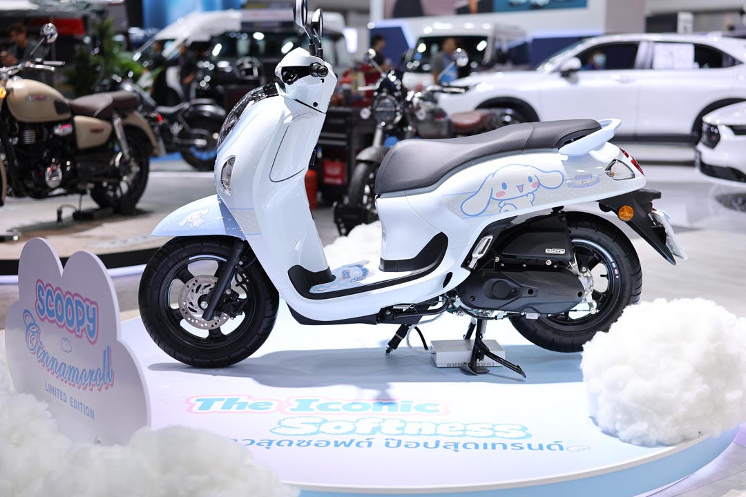 - New Honda SCOOPY x Cinnamoroll Limited Edition ดีไซน์สุดซอฟต์ พร้อมด้วย Box set ของพรีเมียมสุดเอกซ์คลูซีฟจาก Cinnamoroll ได้แก่ Honda SMART KEY พร้อมเคสลาย Cinnamoroll หมวกกันน็อก กรอบป้ายทะเบียน และแผ่นยางรองพื้นลวดลาย Cinnamoroll แมตช์กับดีไซน์รถ ดอกเบี้ยพิเศษ 99% พร้อมเปิดจองจำนวนจำกัด 2,000 คันเท่านั้น