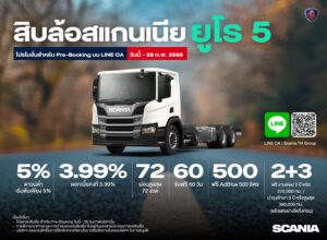 สัญญาณที่ดีและแนวโน้มความต้องการรถบรรทุก 10 ล้อ Euro 5 ผนวกกับตลาดรถบรรทุก 10 ล้อ ของไทย มีขนาดใหญ่มาก โดยรถบรรทุกน้ำหนักเกิน 7 ตัน ขึ้นไป ที่จดทะเบียนใหม่ในปี 2567 ที่ผ่านมามีประมาณ 11,000 คัน เป็นรถบรรทุก 10 ล้อ ถึงประมาณ 50% หรือ 5,500 คัน ทำให้ สแกนเนีย ศึกษาตลาดอย่างจริงจัง โดยทีมสนับสนุนการขายและฝ่ายขายร่วมกันออกหาลูกค้า ศึกษาหาความต้องการที่แท้จริง และนำข้อมูลที่ได้มาหาโซลูชั่นร่วมกับบริษัทฯ แม่ที่สวีเดน เพื่อพัฒนาและยกระดับรถบรรทุก 10 ล้อ ที่เป็น Euro 5 ให้เหมาะสมกับตลาดประเทศไทย มีสมรรถนะสูงสุด ประหยัดน้ำมัน ปลอดภัยตามมาตรฐานยุโรป เป็น DNA สแกนเนีย ที่ทุกคนมั่นใจ พิเศษสุดเพราะมีระบบช่วงล่างให้เลือกทั้งแบบแหนบ และ ถุงลม ซึ่งได้รับความนิยมในยุโรปและอเมริกา เนื่องจากบำรุงรักษาง่ายใช้เวลาไม่นาน ปรับระดับความสูงต่ำได้ มีความนิ่มนวล รักษาสินค้าได้ดี ช่วยยืดอายุการใช้งานอะไหล่ส่วนอื่นๆ ได้ นอกจากนั้นยังสามารถยกเพลาตามได้มาจากโรงงานเพื่อประหยัดหน้ายาง ช่วยในการขับขี่และการขนส่งได้โดยไม่เสียสมดุลของตัวรถเพราะเป็นมาตรฐานมาจากโรงงาน นอกจากระบบต่างๆ แล้ว ยังเป็นครั้งแรกในรถสิบล้อกับจอแสดงผลดิจิทัลอัจฉริยะเต็มรูปแบบ ทั้งหน้าปัดมาตรวัดและวิทยุ (Smart Dash) ทั้งหมดนี้ถูกใส่ไว้ใน Scania Rigid Euro 5 อย่างเต็มที่ เพื่อการพัฒนาและพลิกโฉมวงการรถบรรทุก 10 ล้อไทยอย่างแท้จริง ในราคาที่เหมาะสม โดยวันนี้รถบรรทุก 10 ล้อ Scania Rigid Euro 5 พร้อมลงตลาดแล้วและถือเป็นรถบรรทุก 10 ล้อ Euro 5 เจ้าแรกของไทยอีกด้วย