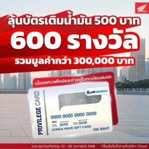 จอง New Honda Wave วันนี้ – 28 กุมภาพันธ์ ลุ้นรับบัตรเติมน้ำมัน 600 รางวัล! รวมมูลค่ากว่า 300,000 บาท