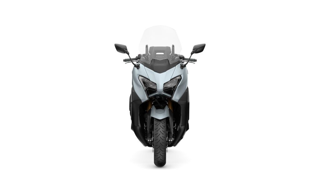 - ปรับโฉมด้านหน้าใหม่ : โดยตัวรถถูกออกแบบให้มีภาพลักษณ์ที่ดูนุ่มนวลขึ้น ด้านหน้าของ New YAMAHA TMAX 2025 ได้รับการออกแบบใหม่ทั้งหมด โคมไฟหน้าแบบใหม่ พร้อมไฟหรี่ด้านหน้า (Position Lights) ถูกเปลี่ยนให้เป็นเส้นต่อเนื่องแบบเรียบหรูโดดเด่น บริเวณขอบด้านนอก และด้านล่างของไฟหน้ามีรูปทรงคล้ายตัว “T” เพื่อให้รถได้มีเอกลักษณ์ที่เฉพาะตัว