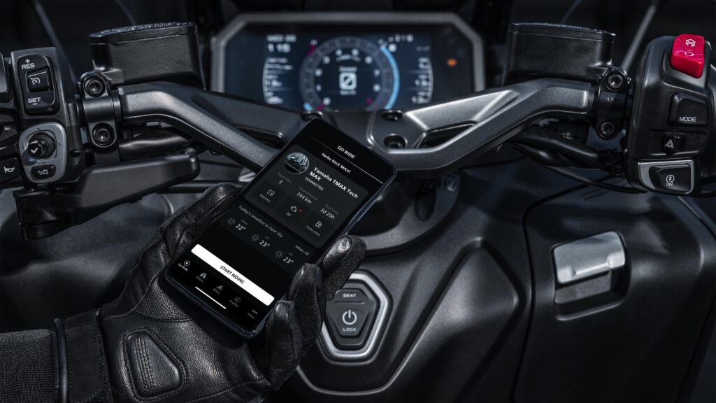- CCU ที่ใช้งานร่วมกับแอป YAMAHA Connect (Y-Connect) : TMAX รุ่นใหม่มีการอัปเกรด CCU ให้มีประสิทธิภาพการเชื่อมต่อและความสะดวกในการใช้งานที่ดียิ่งขึ้น พร้อมรองรับการใช้งานกับแอป “Y-Connect” ซึ่งสามารถแสดงข้อมูลการจัดการรถต่างๆ การแจ้งเตือนสายเรียกเข้าและข้อความ รวมถึงเนื้อหาต่างๆ ที่ช่วยเพิ่มความสะดวกสบายและความบันเทิงระหว่างการขับขี่