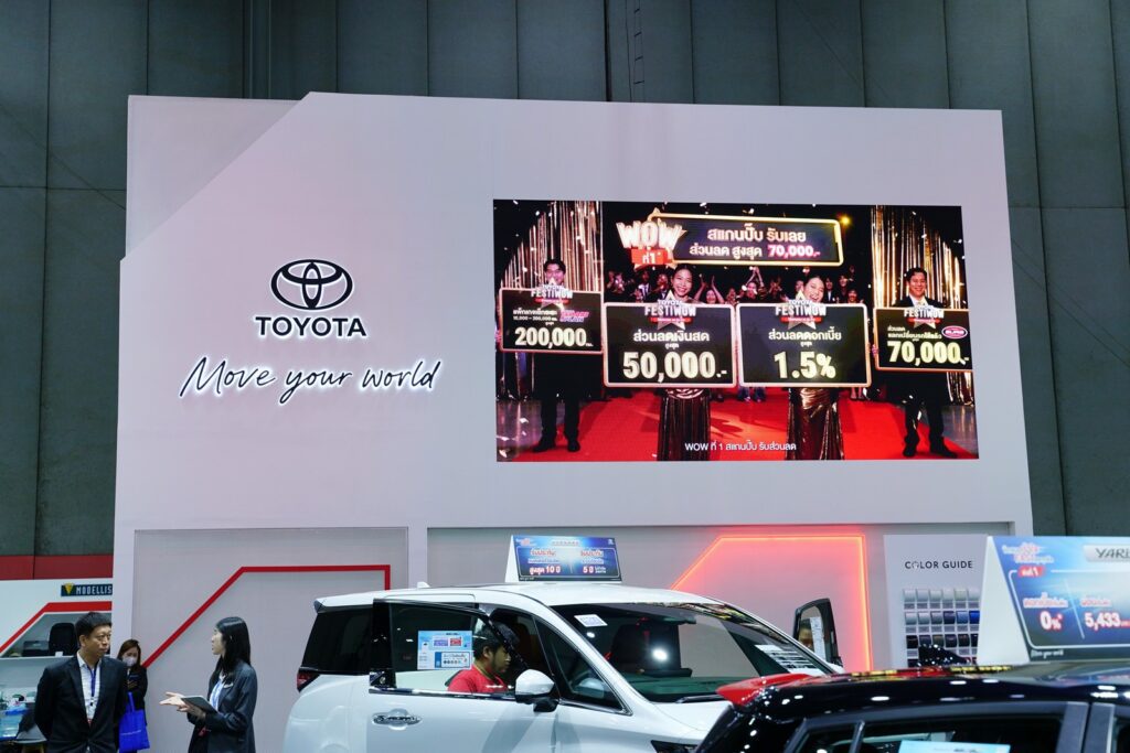 - โตโยต้า (TOYOTA) พบข้อเสนอเร้าใจ FAST สุดทุกดีล แค่แวะชมบูทในงานพร้อมลงทะเบียน รับของที่ระลึกสุดพิเศษ และโปรโมชั่นเด็ด “โตโยต้า เฟสติว้าว (FESTIWOW) โปรพรมแดง ลด ลุ้น ว้าวว” ว้าว 2 ต่อกับข้อเสนอพิเศษสำหรับลูกค้าที่จองและออกรถยนต์โตโยต้าทุกรุ่นตั้งแต่วันนี้ – 31 กรกฎาคม 2568