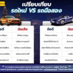 - ดอกเบี้ย – ดอกเบี้ยรถใหม่มักจะต่ำกว่าดอกเบี้ยรถมือสอง แต่อาจต้องขึ้นอยู่กับเงินดาวน์ของราคารถเพื่อให้ได้เงื่อนไขที่ดี ส่วนรถมือสองหากผู้ซื้อมีประวัติดีสามารถที่รับเงื่อนไขในการซื้อที่ดีและอาจจะไม่ต้องใช้เงินดาวน์ หรือถ้าราคารถไม่สูงมาก สามารถซื้อเงินสดได้เลย ทำให้ไม่เสียดอกเบี้ยและไม่เป็นภาระในระยะยาว