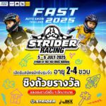 พร้อมขอฝากกิจกรรมสำหรับนักซิ่งฟันน้ำนม กับการแข่งขันจักรยานขาไถ “Strider Racing @Fast Auto Show Thailand 2025” บนสนามแข่งมาตรฐาน สำหรับเยาวชนอายุ 2 – 4 ปี จัดแข่ง 2 รุ่น คือ รุ่น Enjoy และรุ่น Racing รวม 14 รุ่น เพื่อชิงถ้วยและเหรียญรางวัล ในวันเสาร์ที่ 5 และวันอาทิตย์ที่ 6 กรกฎาคม สมัครออนไลน์ได้ถึงวันที่ 30 มิถุนายน ศกนี้ ติดตามรายละเอียดได้ที่ https://form.jotform.com/251512312965453 หรือสมัครหน้างานในวันแข่งขัน