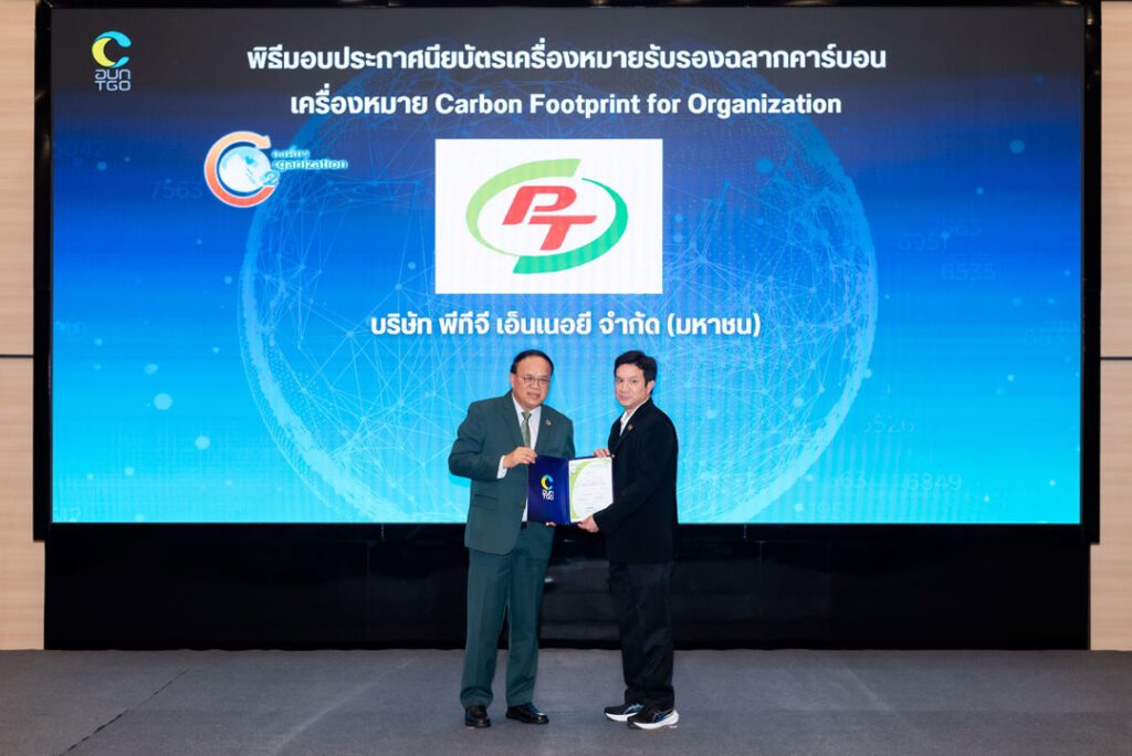 บริษัท พีทีจี เอ็นเนอร์ยี จำกัด (มหาชน) หรือ PTG ตอกย้ำความมุ่งมั่นด้านความยั่งยืนด้วยการรับมอบประกาศนียบัตรเครื่องหมายคาร์บอนฟุตพริ้นท์ขององค์กร (Carbon Footprint for Organization หรือ CFO) โดยมี นายธีรพันธ์ ดิษบุตร ประธานเจ้าหน้าที่บริหาร สายงานการเงินและความยั่งยืนของ PTG เป็นตัวแทนเข้ารับมอบจาก ดร. วิจารย์ สิมาฉายา ประธานกรรมการองค์การบริหารจัดการก๊าซเรือนกระจก (องค์การมหาชน) พิธีอันทรงเกียรตินี้จัดขึ้นโดยองค์การบริหารจัดการก๊าซเรือนกระจก (องค์การมหาชน) หรือ อบก. ณ ห้อง Conference Hall สถาบันเพื่อการยุติธรรมแห่งประเทศไทย (องค์การมหาชน) แจ้งวัฒนะ