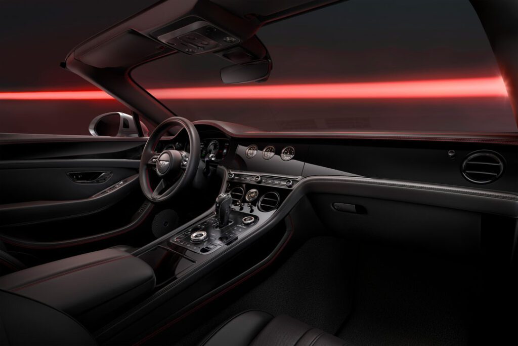 ภายในห้องโดยสารตกแต่งด้วยการปักตัวอักษร Black Edition บนพนักพิงศีรษะของเบาะโดยสารคู่หน้าในรุ่น Continental GT และพนักพิงศีรษะของเบาะโดยสารทั้ง 4 ที่นั่งในรุ่น Flying Spur นอกจากนี้ยังมีการตกแต่งด้วยไม้วีเนียร์แบบ Piano Black กาบบันได Black Edition และการเย็บแบบคอนทราสต์ตามความต้องการของผู้ครอบครอง พร้อมด้วยเบาะโดยสารแบบ Comfort ระบบไฟ Mood Lighting หลากสีภายในห้องโดยสาร จอแสดงผลแบบ Rotating Display และแป้นเหยียบคันเร่งแบบสปอร์ต
