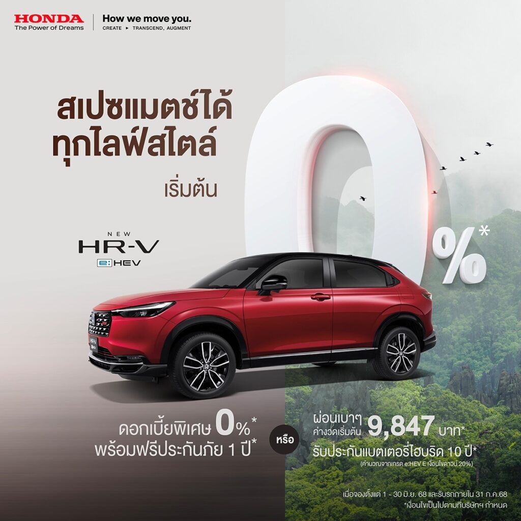 ลูกค้าที่กำลังมองหารถใหม่อยู่ ห้ามพลาด ! บริษัท ฮอนด้า ออโตโมบิล (ประเทศไทย) จำกัด ส่งโปรโมชันพิเศษกลางปีสุดคุ้มค่า ด้วยรถฮอนด้าหลากหลายรุ่นที่พร้อมตอบโจทย์ไลฟ์สไตล์ กับหลากหลายข้อเสนอ* ให้คุณเลือก ไม่ว่าจะเป็นสายดอกเบี้ย 0% ผ่อนชิลๆ พร้อมฟรีประกันภัย หรือ ฟรี Honda Exclusive Care แพ็กเกจสุดคุ้ม ครอบคลุมตั้งแต่วันออกรถใหม่ มอบความอุ่นใจในระยะยาวสูงสุด 5 ปี หรือ 140,000 กม.* หรือเลือกรับโปร ‘Double Smile Plus’ กับช้อยส์ที่ตรงใจสไตล์คุณ ออกรถที่ใช่ ดาวน์น้อยเริ่มต้นเพียง 10% หรือผ่อนน้อย ค่างวดต่อเดือนสบาย ๆ ก็เป็นเจ้าของรถฮอนด้าได้ง่าย ๆ เสริมความมั่นใจยิ่งขึ้นในการเป็นเจ้าของรถฟูลไฮบริด e:HEV ของฮอนด้าทุกรุ่น ด้วยการรับประกันอายุการใช้งานแบตเตอรี่ไฮบริดถึง 10 ปี พิเศษยิ่งขึ้นกับแคมเปญ Honda Happy Trade-in รถเก่าแลกซื้อรถใหม่** เมื่อนำรถยนต์คันเก่ามาขาย และออกรถยนต์ฮอนด้าคันใหม่รุ่นที่ร่วมรายการที่โชว์รูมฮอนด้า รับสิทธิพิเศษเพิ่มเติม