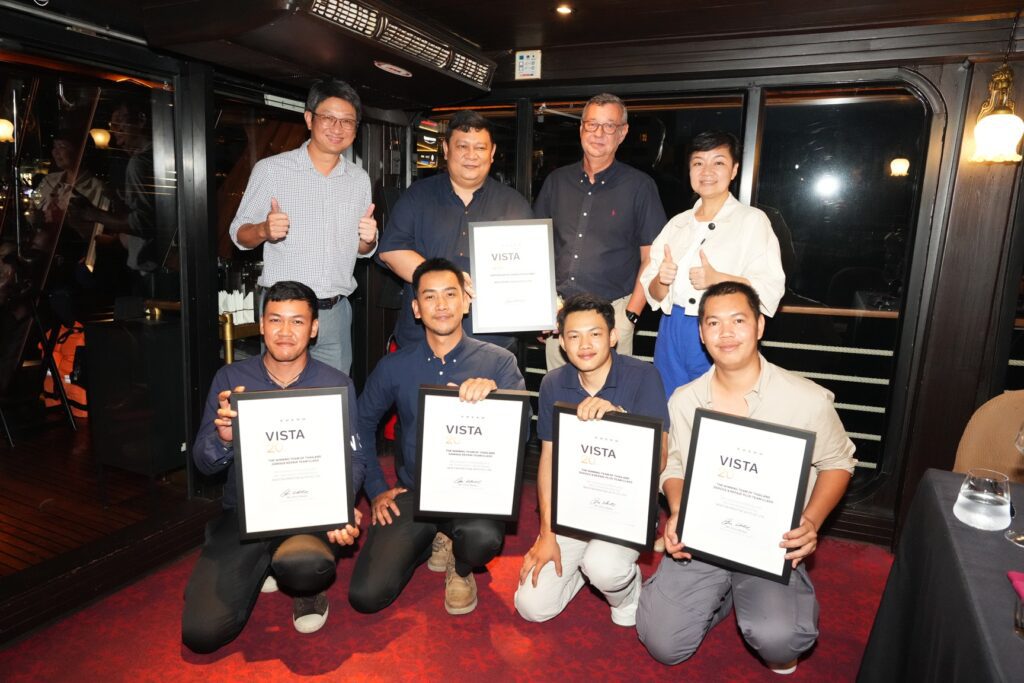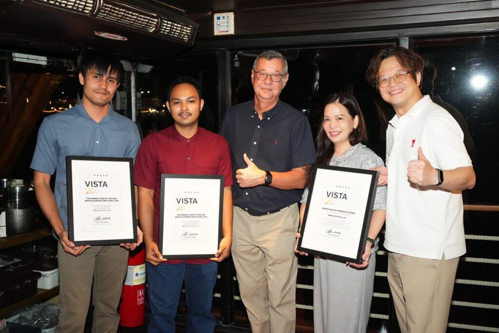 วอลโว่ คาร์ ประเทศไทย จัดงานเลี้ยงเฉลิมฉลองให้แก่ทีมช่างเทคนิคที่คว้าชัยจากเวที VISTA 2024 (Volvo International Service Training Award) การแข่งขันที่จัดขึ้นเพื่อประชันความรู้ความสามารถของพนักงานฝ่ายบริการหลังการขายของวอลโว่ เพื่อเฟ้นหาทีมงานฝ่ายบริการหลังการขายที่มีความสามารถสูงสุดของวอลโว่ การแข่งขันในครั้งนี้เราได้ผู้ชนะจากทีม Service & Repair และ Damage Repair จากผู้แทนจำหน่ายวอลโว่ 2 ราย ได้แก่ บริษัท เมอร์ค ออโต้ จำกัด จำนวน 2 คน และ บริษัท นิวตัน เพรสทีจ ออโต้ จำนวน 4 คน ความสำเร็จนี้ถือเป็นบทพิสูจน์ถึงมาตรฐานการฝึกอบรม ความเชี่ยวชาญ และทักษะระดับสากลของทีมช่างเทคนิควอลโว่ งานเลี้ยงแสดงความยินดีและมอบรางวัลจัดขึ้นอย่างอบอุ่นเมื่อวันที่ 22 พฤษภาคม 2568 บนเรือพฤกษ์ครูซ ท่ามกลางบรรยากาศริมแม่น้ำเจ้าพระยา