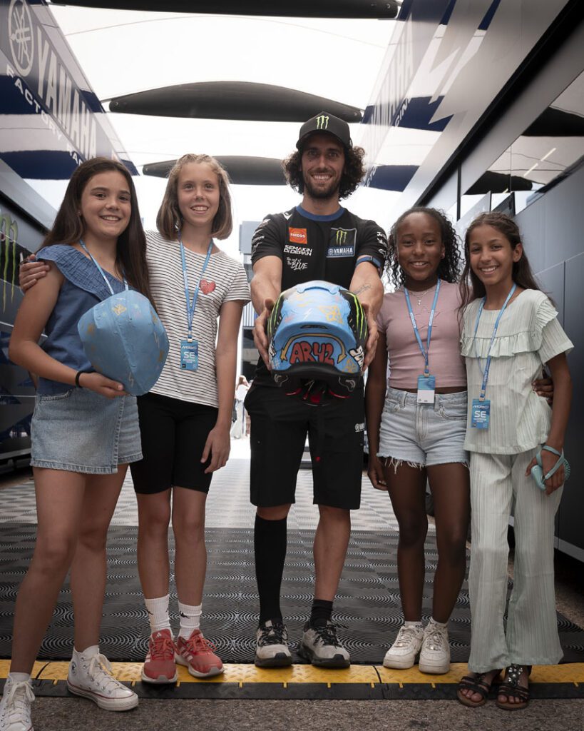 ทางด้าน “อเล็กซ์ รินส์” เจ้าของหมายเลข 42 จากทีม Monster Energy Yamaha MotoGP เปิดตัวหมวกกันน็อคลายพิเศษที่จะใช้ในการแข่งขันเร็วๆ นี้ร่วมกับเหล่าศิลปินตัวน้อยผู้อยู่เบื้องหลังการออกแบบ