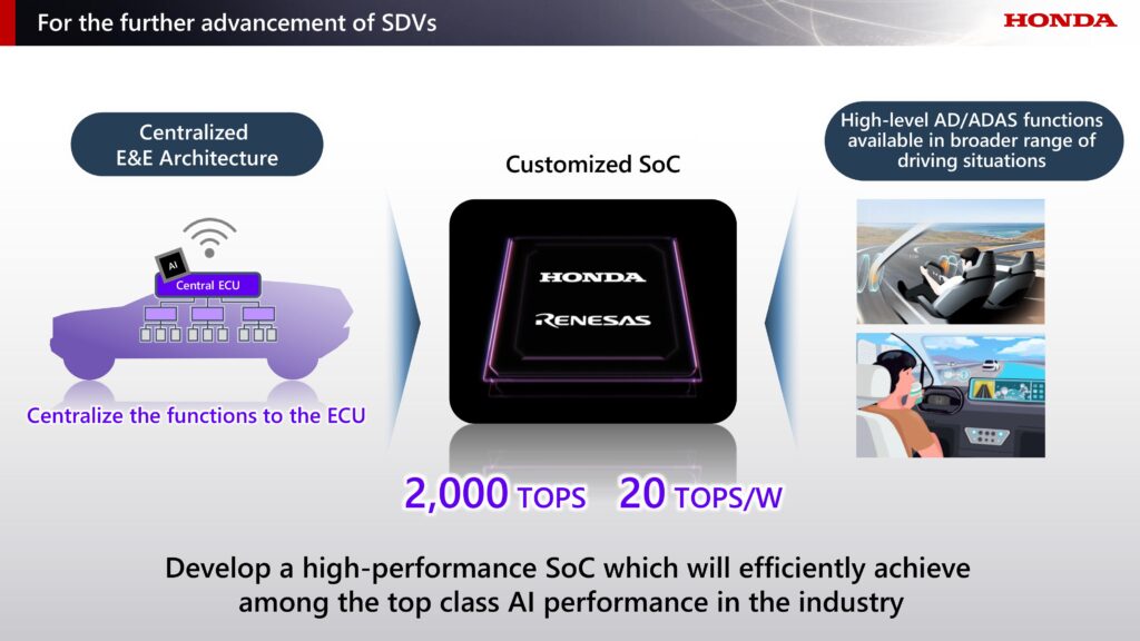 - นอกจากนี้ Honda 0 Series เจเนอเรชันถัดไป จะมาพร้อมสถาปัตยกรรมยานยนต์แบบ Centralized E&E Architecture เพื่อมอบระบบ AD/ADAS ที่ล้ำสมัยยิ่งขึ้น