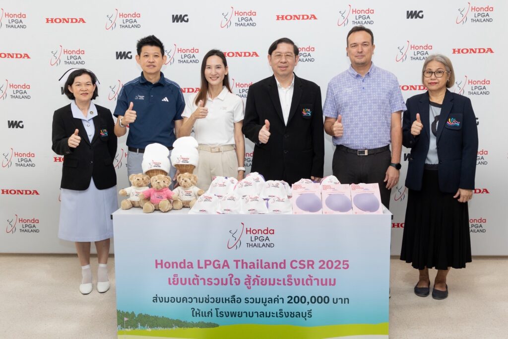 ฮอนด้า แอลพีจีเอ ไทยแลนด์ 2025 สานต่อเจตนารมณ์ในการมอบสิ่งดี ๆ คืนสู่สังคม ด้วยการจัดกิจกรรม “เย็บเต้ารวมใจ สู้ภัยมะเร็งเต้านม” ปีที่ 2 โดยคณะผู้จัดการแข่งขันกอล์ฟสตรีระดับโลก “ฮอนด้า แอลพีจีเอ ไทยแลนด์ 2025” ได้ส่งมอบเต้านมเทียมจำนวน 600 ชุด, ชุดตรวจมะเร็งเต้านมด้วยตนเอง, บราสำหรับผู้ป่วยมะเร็งเต้านม พร้อมหมวกไหมพรม รวมถึงเงินบริจาคจากกิจกรรมฯ และค่าสมัครการแข่งขัน Honda LPGA Thailand 2025 National Qualifiers รวมมูลค่า 200,000 บาท ให้แก่ โรงพยาบาลมะเร็งชลบุรี เพื่อใช้ประโยชน์ในการดูแลและฟื้นฟูผู้ป่วยมะเร็งเต้านม
