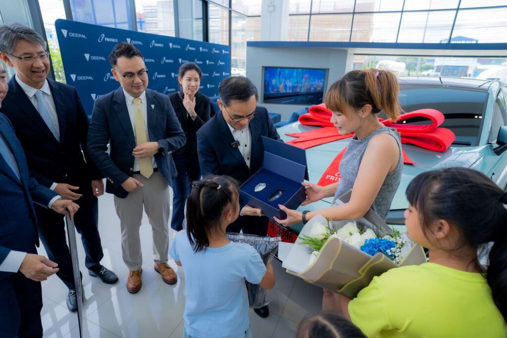พร้อมกันนี้ คณะผู้บริหารระดับสูงของฉางอาน, ดีพอล และไพรม์มัส กรุ๊ป, ดีพอล ไพรม์มัส ได้ร่วมแสดงความยินดีและส่งมอบรถยนต์ SUV สปอร์ตพรีเมี่ยม ไฟฟ้า 100% ในรุ่น DEEPAL S07 ให้แก่ลูกค้าคนสำคัญ “สายชล นิตรานนท์” และครอบครัว พร้อมมอบของที่ระลึก ในการต้อนรับการเป็นสมาชิกใหม่ของครอบครัว “ดีพอล ไพรม์มัส ชลบุรี” อีกด้วย