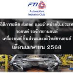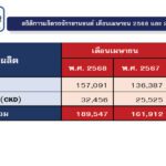 เดือนเมษายน 2568 ผลิตรถยนต์ 104,250 คัน ลดลงร้อยละ 0.40 ผลิตต่ำสุดในรอบ 44 เดือน ขาย 47,193 คัน เพิ่มขึ้นร้อยละ 0.97 ส่งออก 65,730 คัน ลดลงร้อยละ 6.31 ผลิตรถยนต์ไฟฟ้า 4,764 คัน เพิ่มขึ้นร้อยละ 639.75 ขายรถยนต์ไฟฟ้า (BEV) 10,981 คัน เพิ่มขึ้นร้อยละ 181.56 ส่งออกรถยนต์ไฟฟ้า 660 คันเป็นเดือนแรก