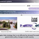 - มุ่งดำเนินงานตามกลยุทธ์ห่วงโซ่อุปทานที่มีความยืดหยุ่นสูง โดยเตรียมจัดทำระบบการผลิตที่มีความยืดหยุ่น ที่สามารถปรับการผลิตได้อย่างเหมาะสมตามความต้องการและเป้าการขายได้ ผ่านการสร้างสายการผลิตที่สามารถผลิตได้ทั้ง EV และ HEV เพื่อรองรับกับการเติบโตของการจำหน่ายรถไฮบริดอย่างต่อเนื่อง และเพื่อรองรับการเปลี่ยนแปลงไปสู่ยุคยานยนต์ไฟฟ้าในระยะกลางถึงระยะยาว