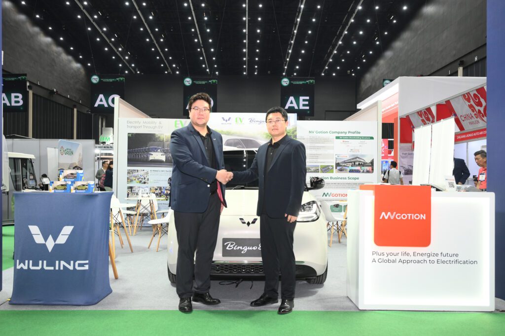 ในภาพ นายพิทยา ธนาดำรงศักดิ์ ประธานเจ้าหน้าที่บริหาร บริษัท อีวี ไพรมัส จำกัด พร้อมด้วย Mr. Hao Feng, Sales Division Manager บริษัท เอ็นวี โกชัน จำกัด นำผลิตภัณฑ์แบตเตอร์รี่ที่ใช้ในสายการประกอบรถวู่หลิง บิงโก ในประเทศไทย เข้าร่วมแสดงในงาน The Future Mobility Thailand 2025 ที่จัดขึ้นเมื่อเร็ว ๆ นี้ ณ ศูนย์แสดงสินค้าไบเทค บางนา
