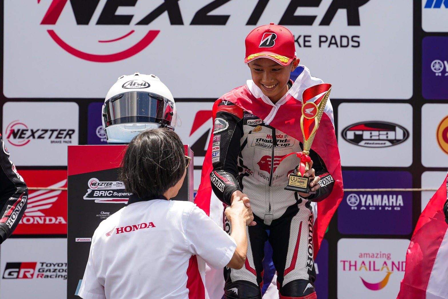 จากนั้น “อุ้ม-นพรุธพงษ์” ก็ได้รับสิทธิ์ไวลด์การ์ดเข้าร่วมการแข่งขันรายการเอฟไอเอ็ม เอเชีย โร้ด เรซซิ่ง แชมเปียนชิพ 2025 สนามสุดท้าย ณ บุรีรัมย์ อินเตอร์เนชั่นแนล เซอร์กิต ก่อนจะสร้างผลงานคว้าโพเดียมรองชนะเลิศและอันดับที่ 3 ในคลาส AP250 มาครอง ฉายแววการเป็น The Next Successor อย่างโดดเด่น