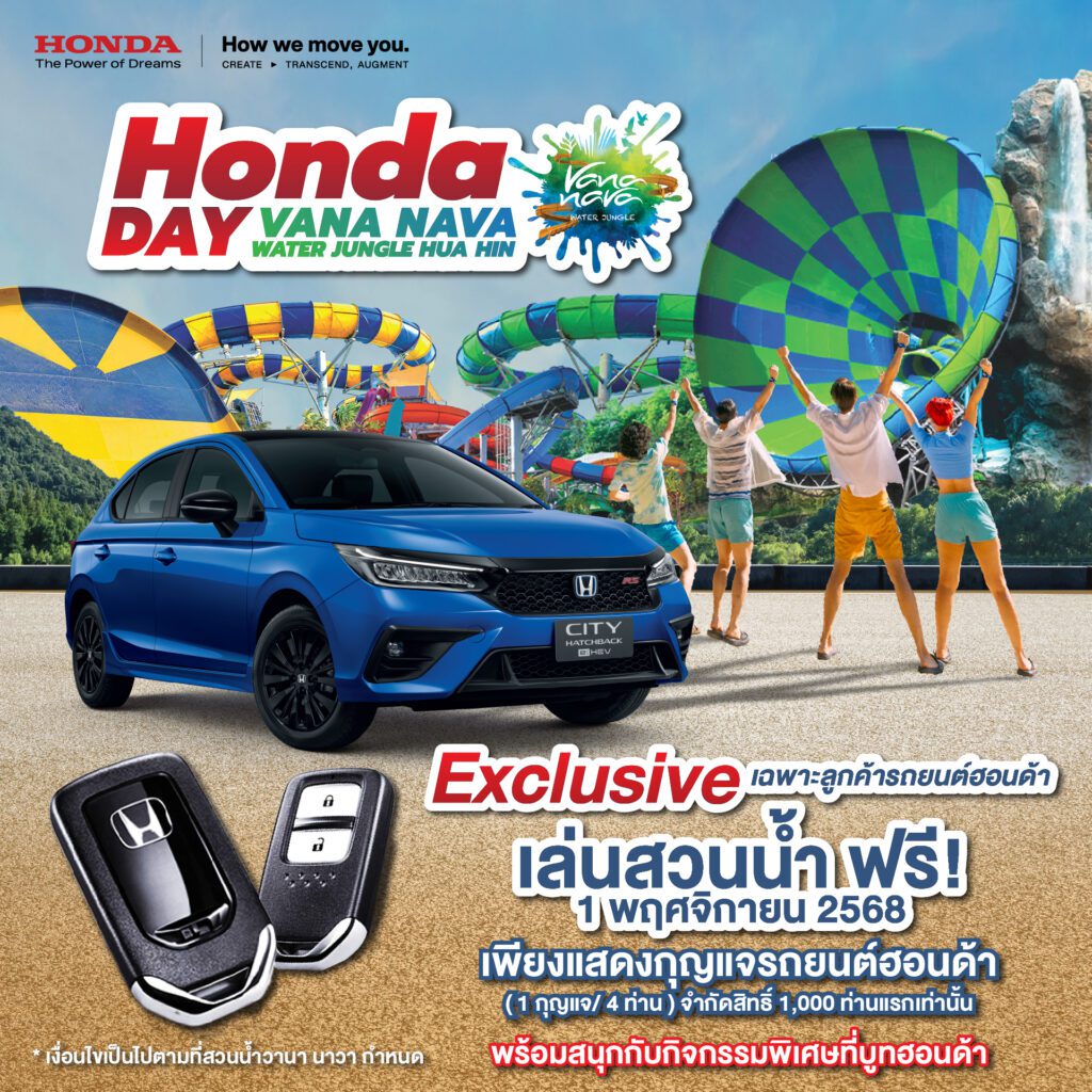 ครอบครัวฮอนด้า เตรียมตัวให้พร้อม! กับกิจกรรม Honda Day 2025 มอบสิทธิพิเศษ เข้าสวนน้ำ วานา นาวา หัวหิน (Vana Nava Hua Hin) ฟรี ! ในวันเสาร์ที่
