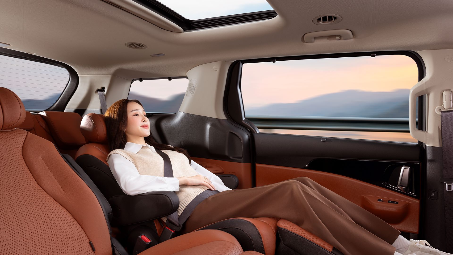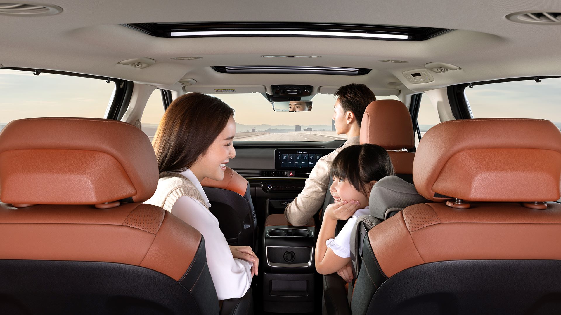 ด้วยการกดเพียงครั้งเดียวมอบความสบายให้กับผู้นั่งได้อย่างง่ายดาย สำหรับรุ่น The new Kia Carnival HEV 7-seat Premium เบาะนั่งแถวสองเป็นเบาะแบบ Captain Seats ที่สามารถถอดออกได้เพื่อเพิ่มความอเนกประสงค์ในการใช้งาน และยังสามารถปรับเปลี่ยนตำแหน่งให้เป็นแบบนั่งหันหน้าเข้าหากันได้ ให้สมาชิกในครอบครัวได้มีปฏิสัมพันธ์กันได้ตลอดทริป พร้อมกันนี้ The new Kia Carnival HEV 7-seater ทั้งสองรุ่นได้รับการปรับให้มีพื้นที่ทางเดิน (Walkthrough access) ที่เอื้อต่อการเข้า-ออกเบาะหลังได้สะดวกยิ่งขึ้นสำหรับสมาชิกครอบครัวทุกคน โดยเฉพาะเด็กและผู้สูงอายุ นอกจากนี้ ด้วยจุดยึดสําหรับติดตั้งเบาะนั่งสําหรับเด็ก (ISOFIX) ที่มีให้ในตำแหน่งที่นั่ง 4 ตำแหน่งเป็นมาตรฐาน (2 จุดบนเบาะนั่งแถวสอง และอีก 2 จุดบนเบาะแถวสาม) ซึ่งช่วยให้สามารถติดตั้งเบาะนั่งสำหรับเด็กในตำแหน่งต่าง ๆ ได้อย่างยืดหยุ่น เสริมความปลอดภัยและความสะดวกเพื่อตอบสนองความต้องการของครอบครัวได้ดีที่สุด