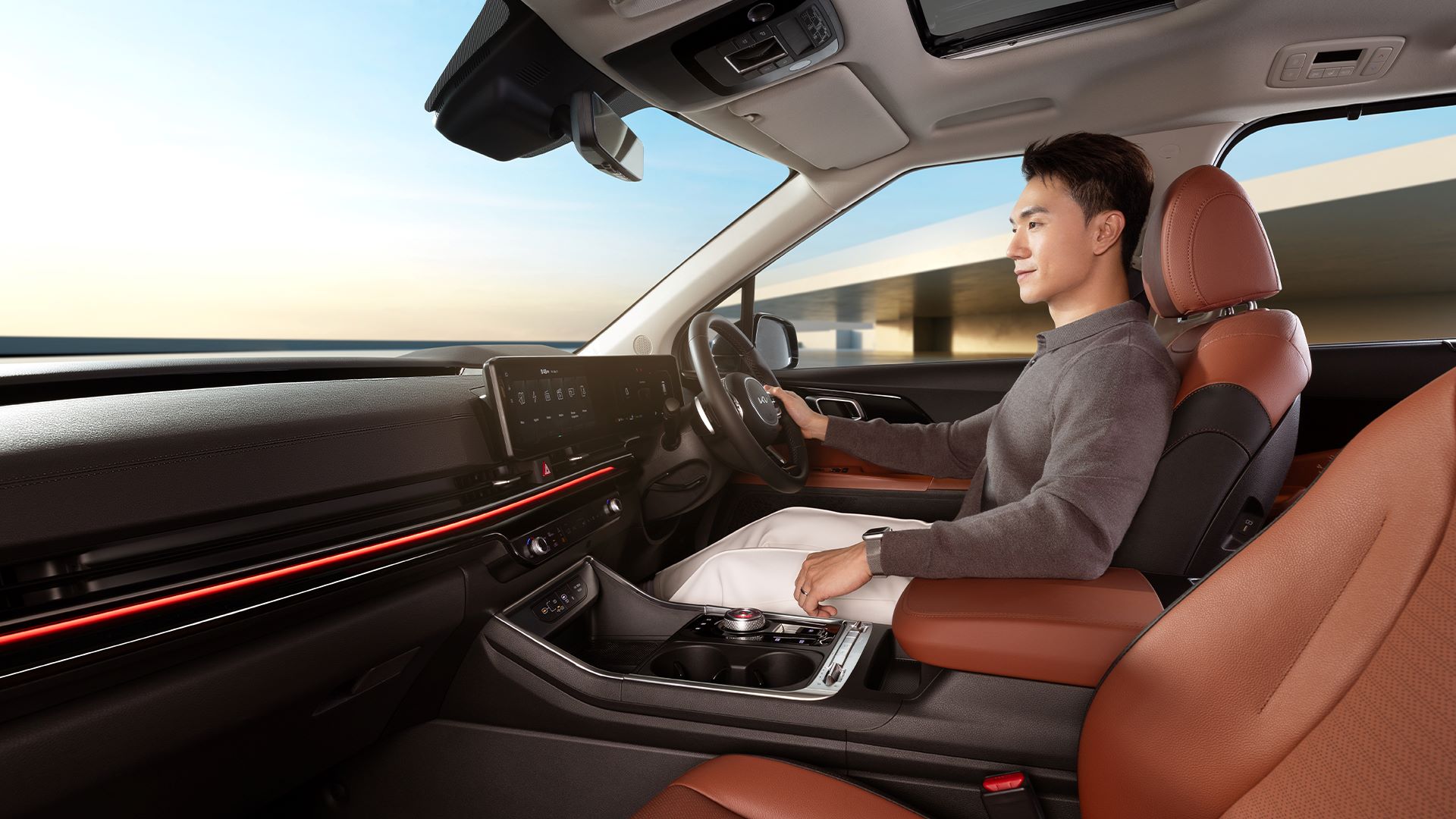 เพื่อมอบประสบการณ์การขับขี่ที่รื่นรมย์ให้แก่ผู้โดยสารทุกคน ไฟเรืองแสง Ambient Light สามารถแต่งสีไฟให้เข้ากับทุกบรรยากาศพร้อมสีให้เลือกถึง 64 เฉดสีครอบคลุมบริเวณคอนโซลและประตู ช่วยเพิ่มบรรยากาศภายในรถให้ดูหรูหรามากยิ่งขึ้น นอกจากนี้ ยังมีฟีเจอร์อัจฉริยะครบครันเพื่อมอบความสะดวกสบายและความปลอดภัย เช่น ระบบแสดงข้อมูลการขับขี่บนกระจกหน้า (Head-up Display) ขนาด 11 นิ้ว ฉายข้อมูลการขับขี่ที่สำคัญขึ้นบนหน้าจอกระจกหน้าในระดับสายของผู้ขับ และกระจกมองหลังแบบดิจิทัล ช่วยให้มองเห็นถนนด้านหลังได้อย่างชัดเจน แม้ว่ารถจะเต็มไปด้วยผู้โดยสารหรือสัมภาระขนาดใหญ่สำหรับเบาะที่นั่งของคนขับในรุ่น The new Kia Carnival HEV 7-seat Luxury ยังได้ติดตั้งระบบจดจำตำแหน่งเบาะนั่งและระบบ Welcome Seat สำหรับผู้ขับ เบาะนั่งคู่หน้าและเบาะนั่งแถวที่สองมาพร้อมระบบระบายอากาศและระบบอุ่นเบาะ สำหรับเบาะผู้โดยสารแถวสองเป็นแบบ Relaxation Seat ที่เปลี่ยนทุกการเดินทางให้เป็นความสะดวกสบายระดับเฟิร์สคลาสด้วยฟังก์ชัน ปรับเอนนอนที่สามารถปรับระดับได้เต็มรูปแบบ พร้อมเบาะรองขาแบบปรับไฟฟ้า มีโหมด One-touch Relaxation ที่สั่งงาน