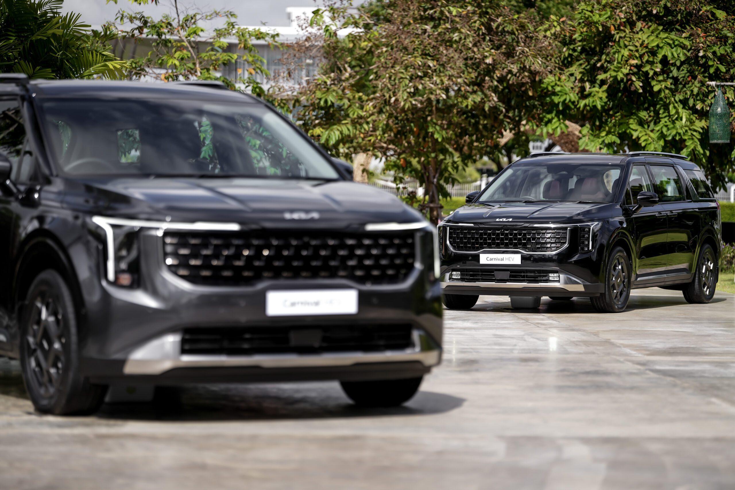 The new Kia Carnival HEV 7-seater จำหน่ายในประเทศไทย 2 รุ่นย่อย ได้แก่ The new Kia Carnival HEV 7-seat Luxury ราคา ราคา 2,699,000 บาท และ The new Kia Carnival HEV 7-seat Premium ราคา 2,499,000 บาท มาพร้อมกับดีไซน์ที่ได้รับการปรับโฉมใหม่ให้มีความโฉบเฉี่ยวยิ่งขึ้น โดดเด่นไม่ซ้ำใคร ทั้งด้านหน้าและด้านหลัง สะท้อนทั้งความหรูหราและความแข็งแกร่ง ในสไตล์ SUV มาพร้อมฟีเจอร์ต่าง ๆ ที่น่าสนใจ อาทิ กระจังหน้าแบบ ‘Tiger nose’ โคมไฟหน้าพร้อมไฟส่องสว่างแบบ LED ดีไซน์ ดวงไฟทรงลูกบาศก์ ชุดไฟหน้าและไฟท้ายแบบ Star Map Lighting ดีไซน์อันเป็นเอกลักษณ์เฉพาะของเกีย และล้ออัลลอยดีไซน์ใหม่ ขนาด 19 นิ้ว นอกจากนี้ ยังมาพร้อมกับแร็คหลังคาที่ไม่เพียงช่วยเสริมลุคความแข็งแกร่งแบบ SUV