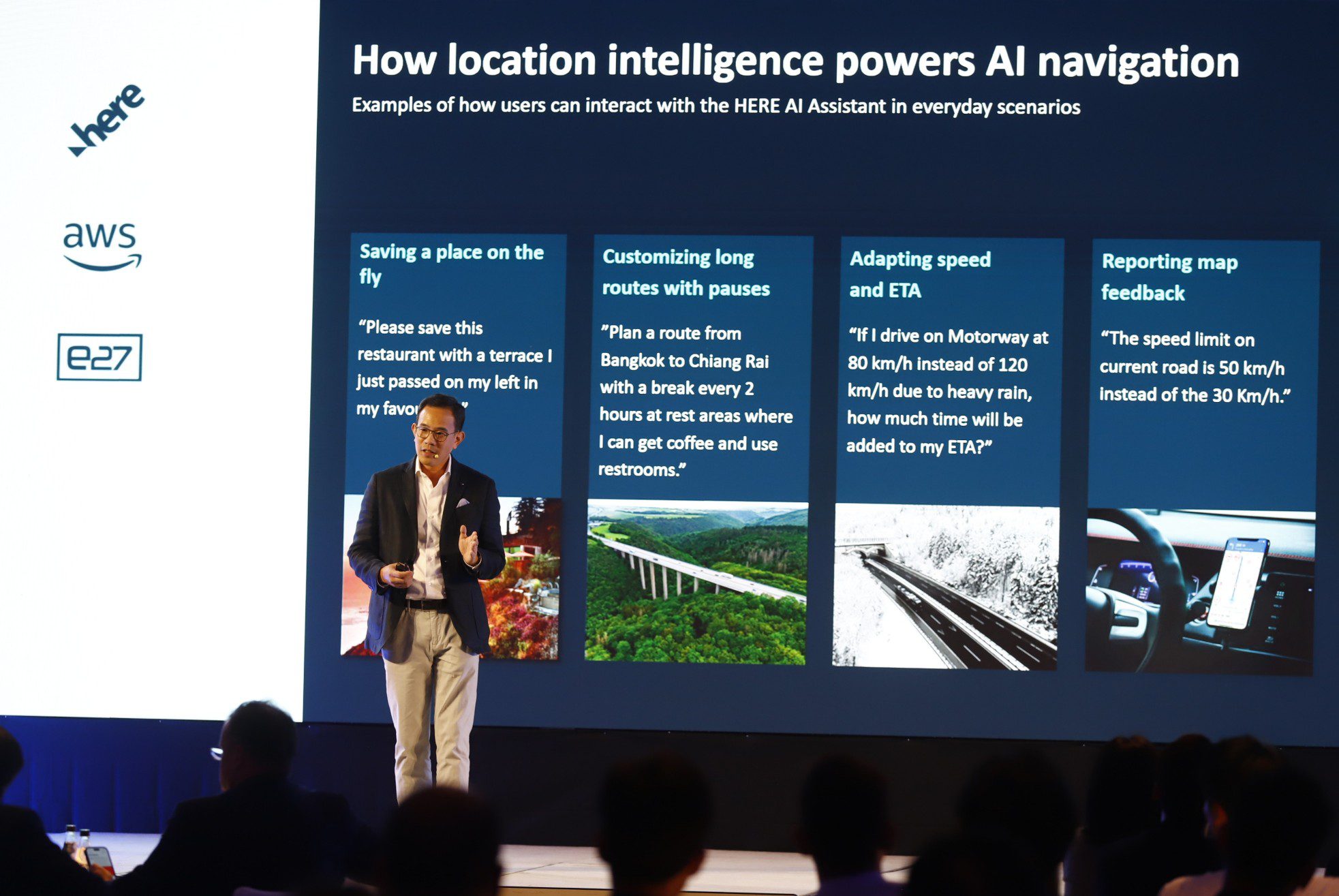 การเดินทางในเมืองกำลังพัฒนาไปอย่างรวดเร็ว โดยแนวคิด Mobility-as-a-Service (MaaS) หรือ บริการระบบคมนาคมขนส่งแบบครบวงจร กำลังกลายเป็นรูปแบบหลักของการเดินทางในอนาคต และเพื่อสนับสนุนการเปลี่ยนผ่านนี้ HERE Technologies ได้พัฒนา HERE AI Assistant ที่ออกแบบมาเพื่อความต้องการของอุตสาหกรรมยานยนต์และการขนส่งยุคใหม่ให้ตอบโจทย์ผู้โดยสารและผู้ใช้งานยานพาหนะเชิงพาณิชย์ โดยใช้เทคโนโลยี Generative AI Large Language Models (LLMs) โมเดลปัญญาประดิษฐ์ขนาดใหญ่ที่เชี่ยวชาญทางด้านภาษา ที่สามารถช่วยให้คำแนะนำตำแหน่งหมุดหมาย การวางแผนการเดินทางแบบเฉพาะบุคคล เพิ่มความแม่นยำด้านการวางเส้นทาง เวลาถึงที่หมาย (ETA) รวมถึงการบริหารจัดการงานขนส่งด้วยความปลอดภัยที่มีประสิทธิภาพยิ่งขึ้น
