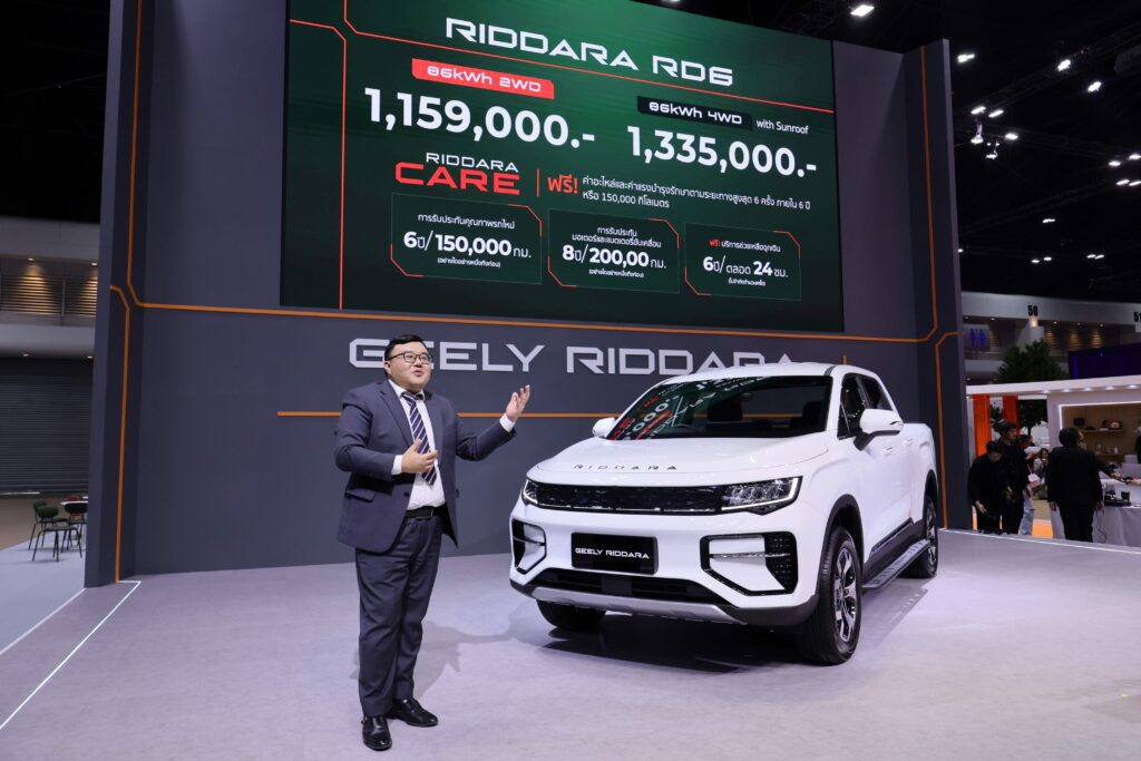 GEELY RIDDARA มอบข้อเสนอพิเศษสำหรับลูกค้าที่จองรถกระบะพลังงานไฟฟ้า RIDDARA RD6 ในงาน Bangkok International Motor Show หรือที่ผู้แทนจำหน่าย GEELY RIDDARA อย่างเป็นทางการทั่วประเทศ ตั้งแต่วันที่ 26 มีนาคม ถึง 6 เมษายน 2568