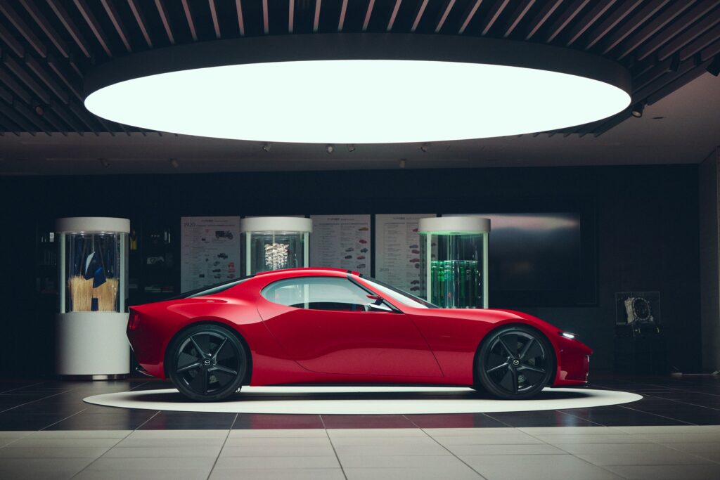 - MAZDA ICONIC SP ยานยนต์ต้นแบบสปอร์ตคอมแพ็คคาร์ที่ขับเคลื่อนด้วยพลังงานไฟฟ้า โดยใช้เครื่องยนต์โรตารี่ อันเป็นเอกลักษณ์ของแบรนด์มาสด้า แบบ 2 โรเตอร์ ทำหน้าที่ผลิตกระแสไฟฟ้าเข้าสู่แบตเตอรี่ รองรับการใช้พลังงานหลากหลายรูปแบบ อาทิ พลังงานไฮโดรเจน และพลังงานสะอาดหลากหลายรูปแบบ โดยเฉพาะพลังงานที่ได้จากธรรมชาติ อาทิ สาหร่ายขนาดเล็ก หรือเปลือกหอย ซึ่งยังคงถ่ายทอดเอกลักษณ์แบรนด์มาสด้าไว้อย่างเต็มเปี่ยม มีจุดศูนย์ถ่วงต่ำ น้ำหนักเบา กระจายน้ำหนัก 50:50 พร้อมการออกแบบตามแนวทาง Kodo Design รวมถึงการขับขี่ที่เป็นหนึ่งเดียวกันกับรถ ตามปรัชญา จินบะ-อิไต ที่พัฒนาขึ้นโดยยึดหลักมนุษย์เป็นศูนย์กลาง เพื่อมอบประสบการณ์ความสนุกสนานในการขับขี่ พร้อมได้รับการออกแบบให้สอดคล้องกับยุคของพลังงานไฟฟ้า เพื่อถ่ายทอดปณิธานความสุขในการขับขี่ของมาสด้า โดยรถต้นแบบคันนี้กำลังอยู่ในขั้นตอนของการพัฒนา เพื่อฟื้นตำนานรถสปอร์ตเครื่องยนต์โรตารี่ให้กลับมามีชีวิตอีกครั้ง และนำเสนอพลังงานทางเลือกหลากหลายรูปแบบให้กับลูกค้า