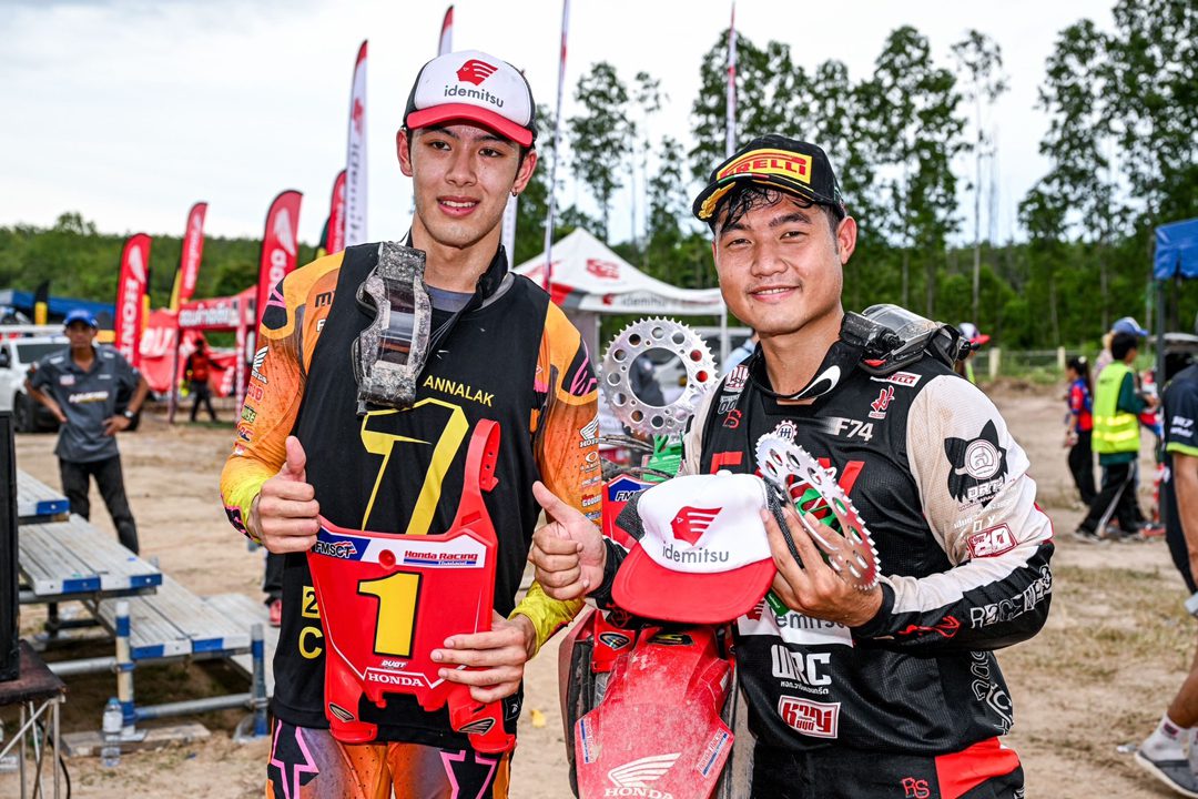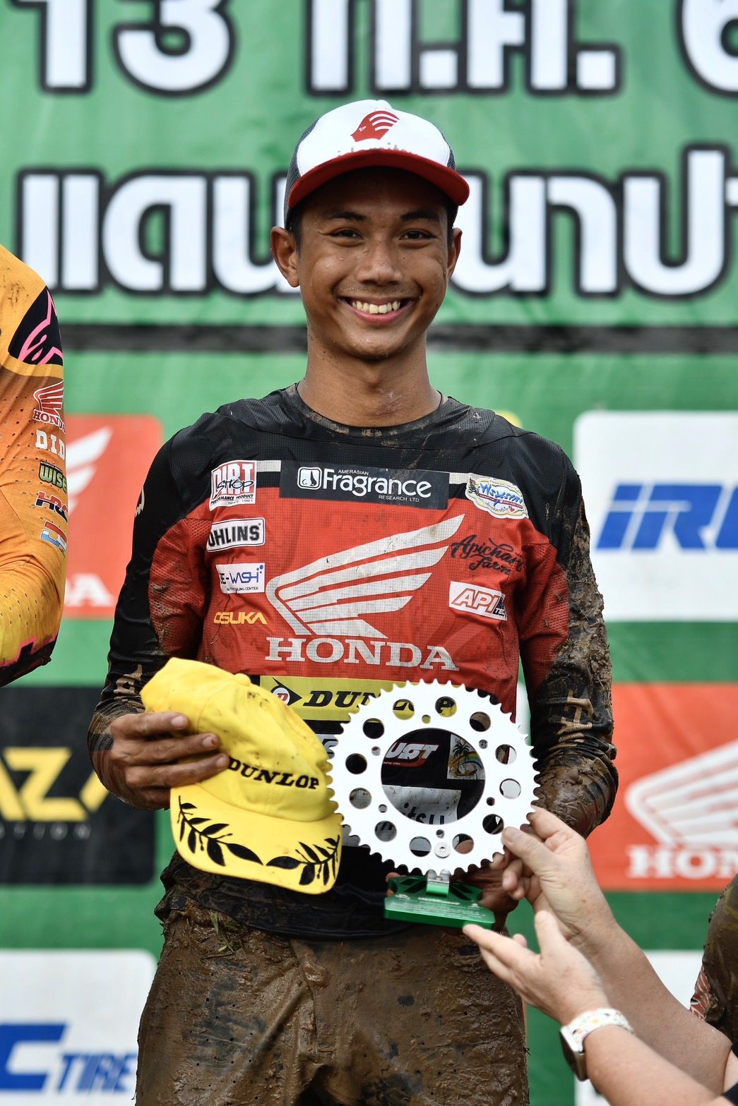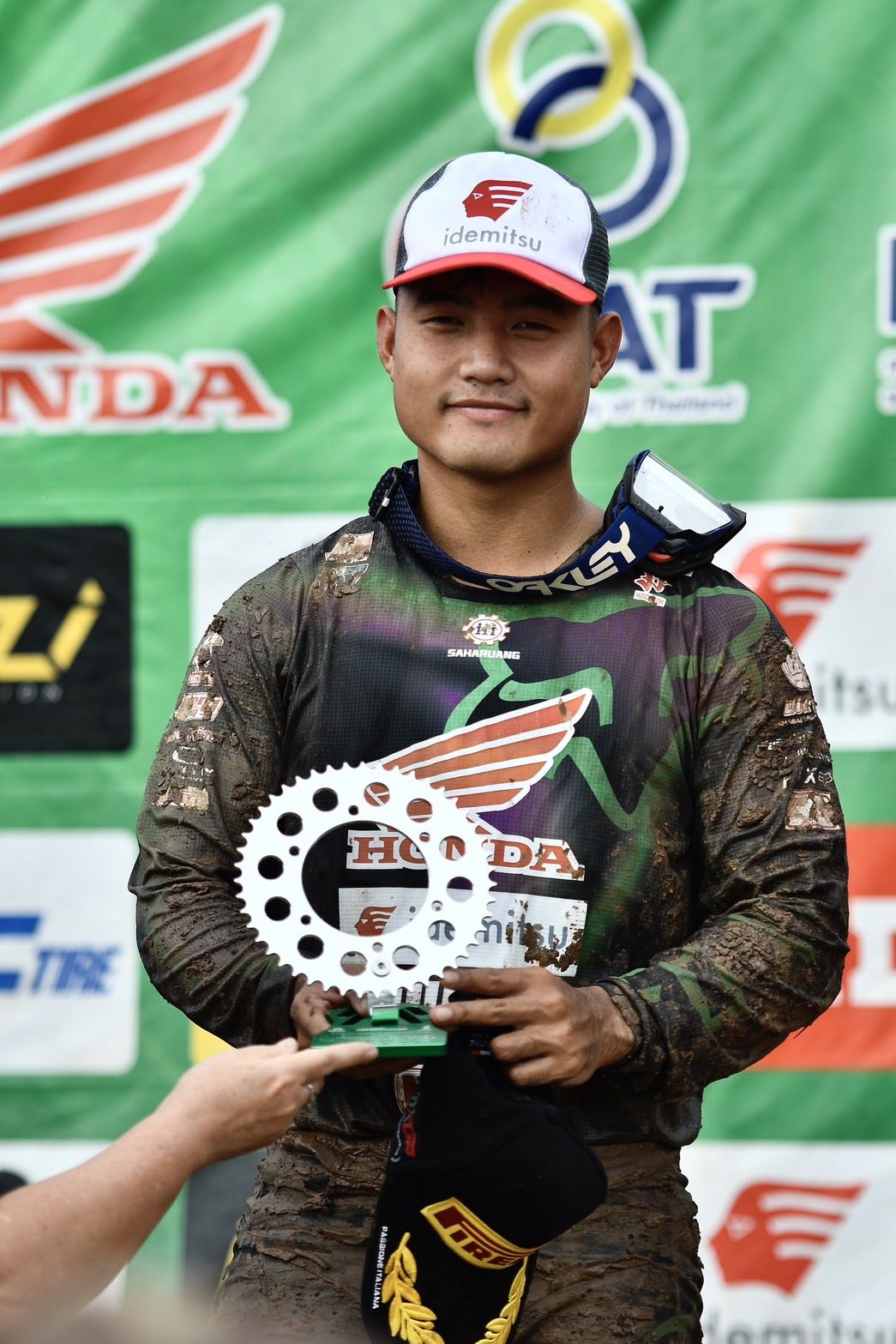 ขณะที่ “ยศ”ภานุพงศ์ สมสวัสดิ์ กับ Honda CRF450R หมายเลข 93 จากทีม Honda ส.จ.โก๋ WRC ชาญยนต์ Idemitsu Drtc Drirtshop เข้าเส้นชัยมาเป็นอันดับที่ 3 โดยมี “แซงค์” กฤษฎา จำรูญจารีต หมายเลจ 17 สังกัดทีม Honda 17 พรนุภาพ Dritshop Idemitsu Dunlop ตามมาเป็นอันดับที่ 4 ซึ่งทั้งสองคันพยายามอย่างเต็มที่ที่จะรักษาโอกาสในการลุ้นแชมป์ให้ได้ ขณะที่ “โออิชิ” พัสกร ปริยวงศธร สังกัดทีม Honda Racing Thailand S Motor หมายเลข 3 เข้าเส้นชัยมาเป็นอันดับที่ 6 โดยทัพนักบิดฮอนด้ายังมีภารกิจในสนามสุดท้ายคือทำผลงานเพื่ออันดับที่ดีที่สุดในชิงแชมป์ประเทศไทย