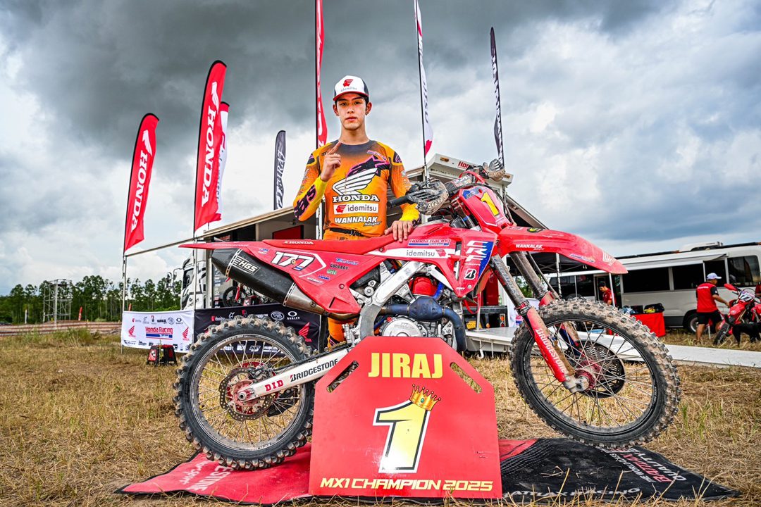 “ฮอนด้า” ผงาดคว้าแชมป์ประเทศไทยสร้างประวัติศาสตร์ ศึก FMSCT Thailand Motocross 2025 รุ่น Premier MX-1 ที่ยกระดับเทียบเท่าการแข่งขันนานาชาติ จากผลงานของยอดนักแข่งที่ได้รับการจับตามองอย่าง “นีโม่” จิรัฎฐ์ วรรณลักษณ์ หมายเลข 177 บิด Honda CRF450R สังกัดทีม Honda Racing Thailand Idemitsu Wannalak Motorsport ด้วยการเก็บคะแนนสะสมขาดลอยคว้าแชมป์เป็นที่แน่นอนแล้วโดยไม่ต้องลุ้นผลการแข่งขันสนามสุดท้าย ในสนามที่ 9 ดวลกันเมื่อวันเสาร์ที่ 9 สิงหาคม 2568 ที่สนามศูนย์ฝึกกีฬามอเตอร์สปอร์ตแห่งประเทศไทยภาคตะวันออก ห้วยใหญ่ จ.ชลบุรี