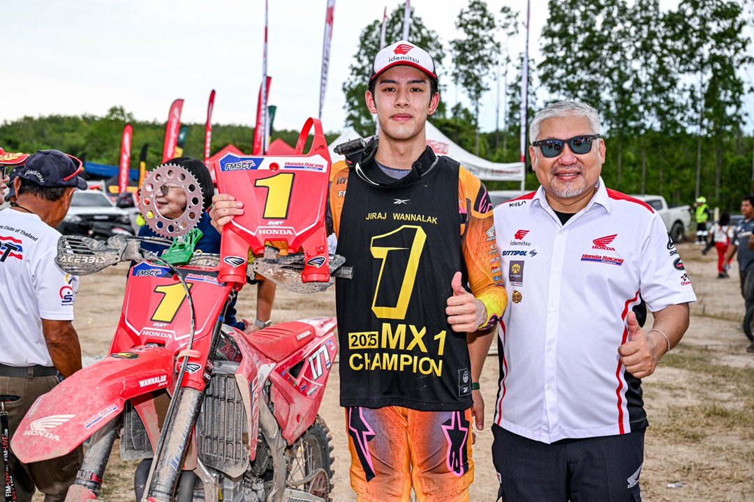 “ฮอนด้า” ผู้นำด้านรถจักรยานยนต์และมอเตอร์สปอร์ตของไทย สร้างประวัติศาสตร์ความเร็วอีกครั้งในการแข่งขัน ด้วยการคว้าแชมป์รุ่น Premier MX-1 จากผลงานของ “นีโม่” จิรัฎฐ์ วรรณลักษณ์ และรถแข่งทางฝุ่น Honda CRF450R หมายเลข 177 สังกัดทีม Honda Racing Thailand Idemitsu Wannalak Motorsport หลังจากที่ ศึกทางฝุ่นชิงแชมป์ประเทศไทย ยกระดับพิกัดการแข่งขันเพื่อเทียบเท่ากับเกมความเร็วระดับโลก พร้อมกวดอีกแชมป์ในรุ่นท็อปของรายการอย่าง Pro MX-2 ควบคู่ไปกับการทำผลงานของทัพนักบิด Honda CRF450R ขณะที่ฮอนด้าขอต่อยอดปีทอง สานต่อความสำเร็จด้วยการป้องกันแชมป์ในซีซั่นหน้า พร้อมพัฒนาและดันนักแข่งไทยสู่การแข่งขันระดับโลก ศึก FMSCT Thailand Motocross 2025 สนามที่ 10 แข่งขันกันต่อเนื่องที่สนามศูนย์ฝึกกีฬามอเตอร์สปอร์ตแห่งประเทศไทยภาคตะวันออก ห้วยใหญ่ จ.ชลบุรี เมื่อวันอาทิตย์ที่ 10 สิงหาคม 2568