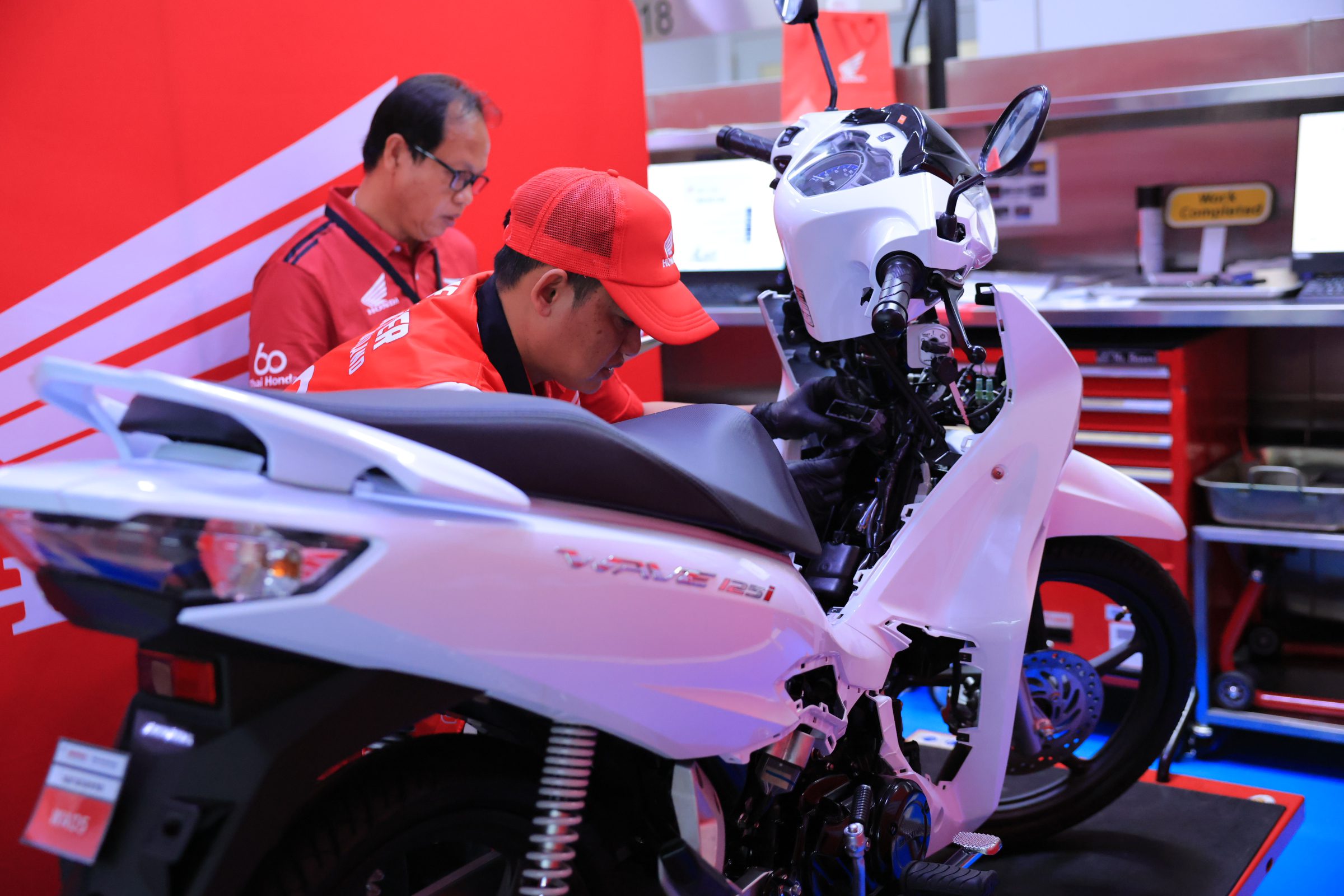 การสอบทฤษฎี : ทดสอบความรู้เกี่ยวกับระบบ SMART Engine เทคโนโลยี PGM-FI ระบบไฟฟ้า เทคโนโลยี eSP+ และมาตรฐานการซ่อมบำรุง รวมถึงการวิเคราะห์ปัญหารถจักรยานยนต์รุ่นใหม่