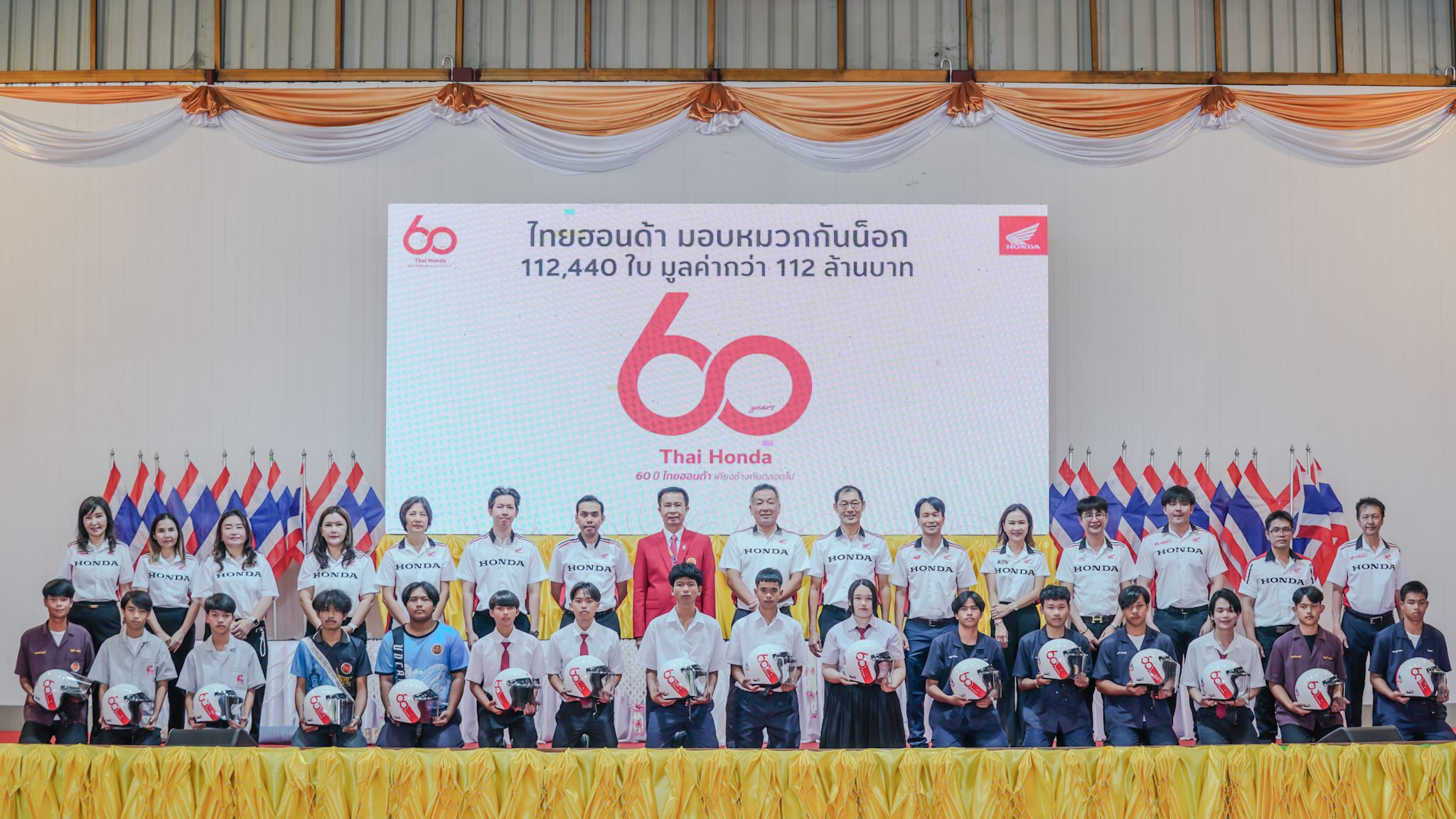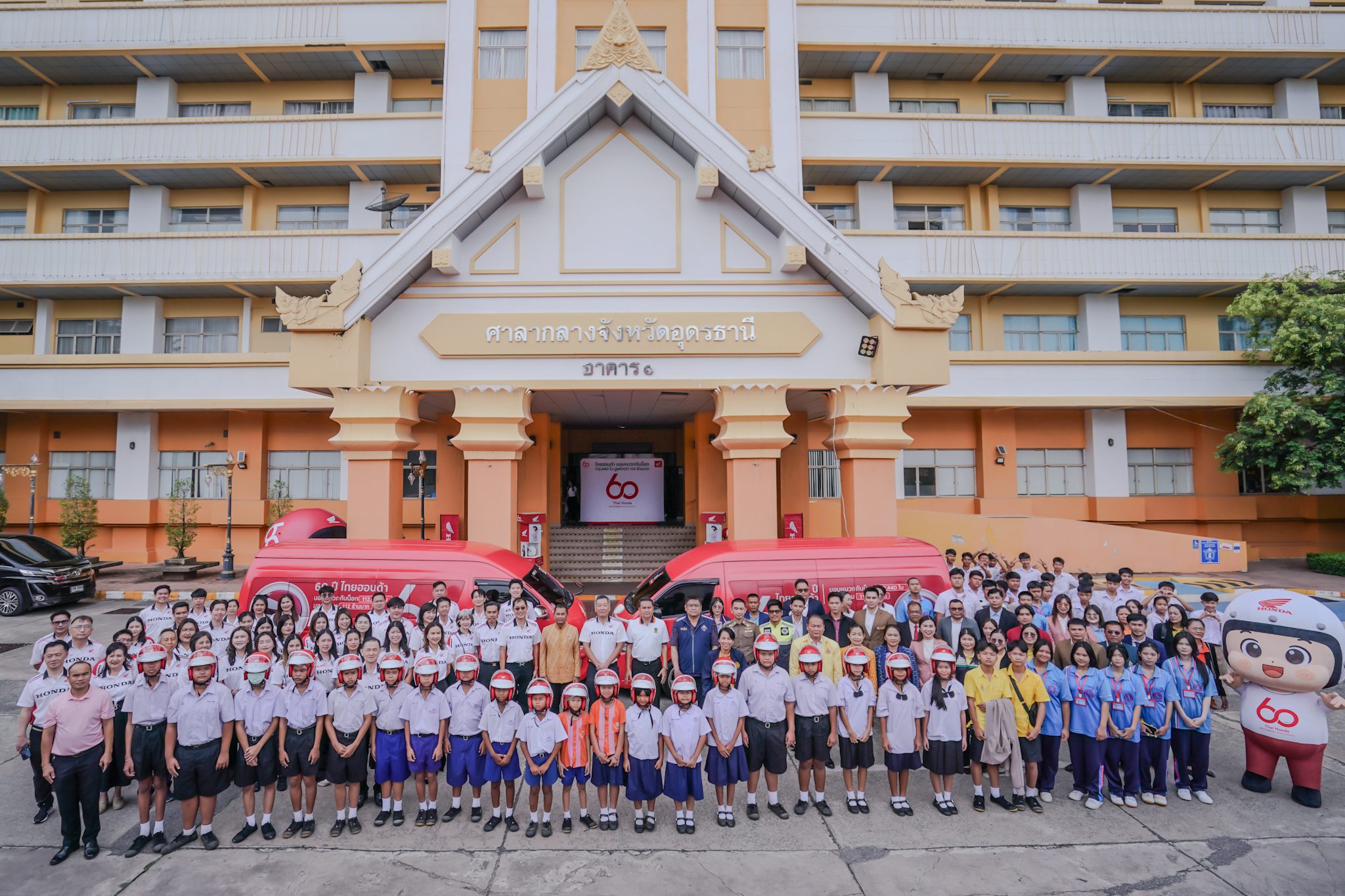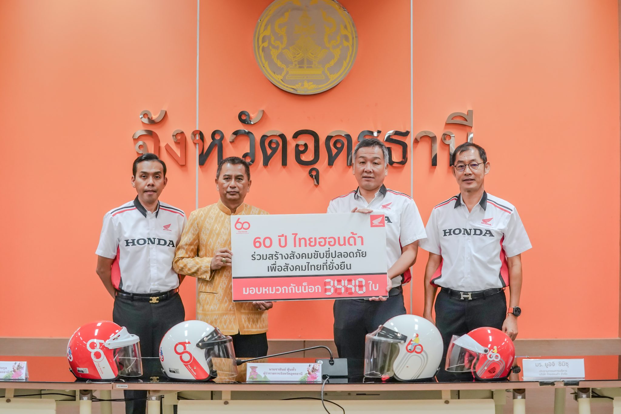 ไทยฮอนด้า ผู้ผลิตและจัดจำหน่ายรถจักรยานยนต์และเครื่องยนต์อเนกประสงค์ฮอนด้าในประเทศไทย ร่วมกับร้านผู้จำหน่ายรถจักรยนต์ฮอนด้า เดินหน้าส่งต่อความห่วงใยในวาระครบรอบ 60 ปี ผ่านโครงการรณรงค์ความปลอดภัยทางถนนระดับประเทศ “60 ปี ไทยฮอนด้า ขับขี่ปลอดภัย เพื่อสังคมไทยที่ยั่งยืน” มอบหมวกกันน็อกมาตรฐาน มอก. ให้กับประชาชนและเยาวชนใน 77 จังหวัด รวมกว่า 112,440 ใบ โดยครั้งนี้คาราวานได้เดินทางเข้ามอบที่จังหวัดอุดรธานี ให้กับหน่วยงานภาครัฐ สำนักงานป้องกันและบรรเทาสาธารณะภัยจังหวัด สถานศึกษาในจังหวัดในสังกัดคณะกรรมการการอาชีวศึกษา และสำนักงานคณะกรรรมการการศึกษาขึ้นพื้นฐาน เป็นจำนวนทั้งสิ้น 3,440 ใบ