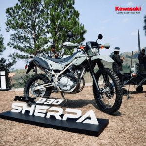 นอกจากนี้ในงานคาวาซากิยังได้เปิดตัวรถจักรยานยนต์รุ่นใหม่ล่าสุด KLX230 Sherpa รถจักรยานยนต์ทะยานสู่เส้นทางแห่งความสนุกสนานจากถนนในเมืองสู่เส้นทางแห่งการผจญภัยในธรรมชาติ รถทื่สืบทอดมาจาก SUPER SHERPA ซึ่งเป็นรุ่นที่ Kawasaki ผลิตและจำหน่ายตั้งแต่ปี 1997 ถึงปี 2007 คำว่า Sherpa คือ คำที่ใช้เรียกคนในท้องถิ่นที่เป็นไกด์และขนสัมภาระระหว่างการปีนเขาหิมาลัย และชื่อ SHERPA นี้ยังสื่อถึง ความหมายว่าเป็นเพื่อนร่วมทางที่ไว้ใจได้ ที่จะเดินทางไปพร้อมกับผู้ขับขี่ และด้วยสโลแกน “จากเมืองสู่ธรรมชาติ” ทำให้รถจักรยานยนต์รุ่นนี้ได้รับความนิยมจากผู้ขับขี่หลายคนในฐานะรุ่นอเนกประสงค์ที่เป็นมิตรและใช้งานได้ง่าย ไม่ว่าจะขี่ในเมืองหรือในป่า KLX230 SHERPA สืบทอดชื่อ “SHERPA” ในฐานะรุ่นอเนกประสงค์อันทรงเกียรติของ Kawasaki ที่สืบทอดแนวคิดของ SUPER SHERPA