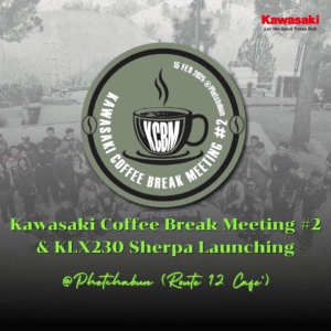 กลับมาอีกครั้งกับกิจกรรมมีตติ้งสำหรับชาวคาวาซากิ กับงาน Kawasaki Coffee Break Meeting หลังจากประสบความสำเร็จในครั้งที่ 1 ไปเมื่อเดือนพฤศจิกายนที่ผ่านมา ณ จ.นนทบุรี ครั้งนี้คาวาซากิจึงขนขบวนยกทัพมาเอาใจแฟนสายเขียวแถบภาคเหนือ พร้อมเซอร์ไพรส์สุดพิเศษ เปิดตัวรถจักรยานยนต์รุ่นใหม่ล่าสุดภายในงาน