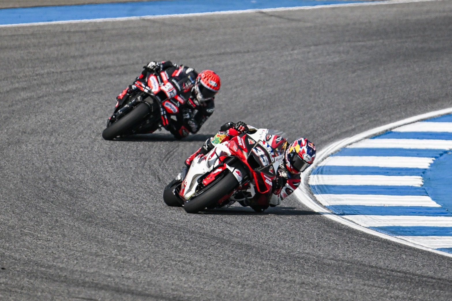 ขณะที่เรซ 2 ซึ่งดวลความเร็วในวันอาทิตย์ นักบิดดาวรุ่งชาวไทยยังคงทำผลงานได้ดี โดย “อุ้ม-นพรุธพงษ์” บิดลุ้นโพเดียมตลอดทั้งเรซ ก่อนบิดเข้าป้ายในอันดับ 4 ตามหลังผู้ชนะเพียง 1.572 วินาที ส่วน “ออสติน-ธนฉรรต” ตามเข้าเส้นชัยในอันดับ 7 ตามหลัง 3.420 วินาที ด้าน “เฟอร์-ปัญจรุจน์” ไม่จบเรซอีกครั้ง