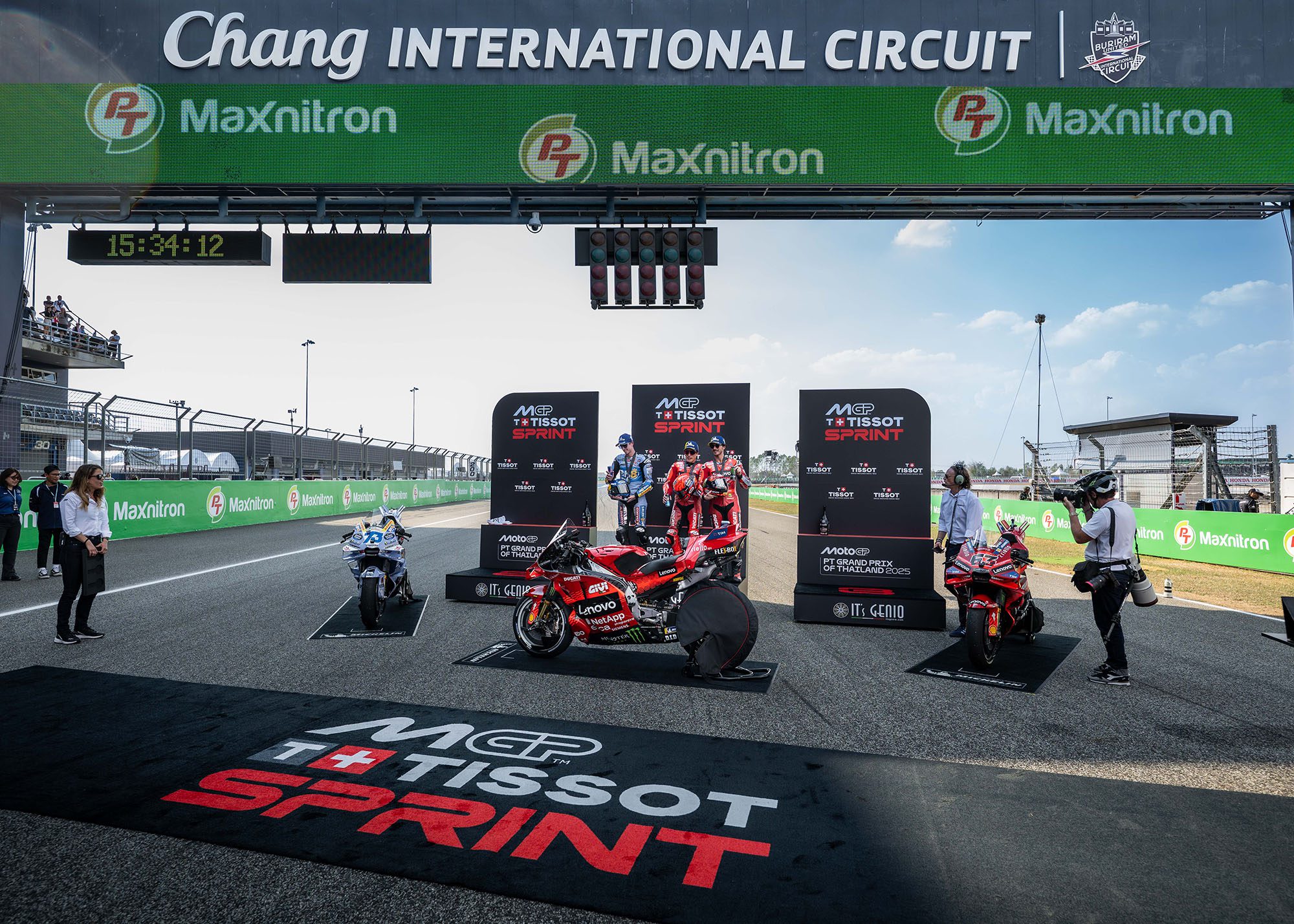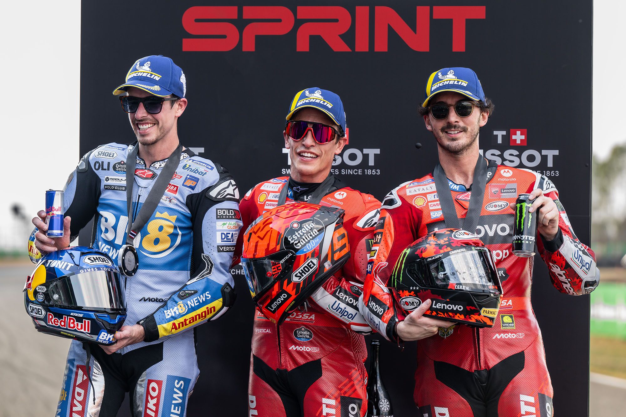 ศึกนี้พี่น้อง! มาร์ค มาร์เกซ แชมป์โลก 8 สมัยชาวสแปนิชจาก ดูคาติ เลอโนโว ทีม นำม้วนเดียวจบผงาดคว้าชัย “สปรินต์เรซ” เหนือคู่แข่งอย่าง “อเล็กซ์ มาร์เกซ” น้องชาย จาก เกรซินี เรซซิ่ง และทีมเมทในทีมโรงงานอย่าง “ฟรานเชสโก้ บันยาญ่า” ขณะ “ก้อง” สมเกียรติ จันทรา นักบิดโมโตจีพีชาวไทยคนแรกจากฮอนด้า ประเดิมเรซแรกอย่างเป็นทางการด้วยผลงานน่าพอใจ ภายใต้เสียงเชียร์กระหึ่มของแฟนมอเตอร์สปอร์ตในบ้านเกิด