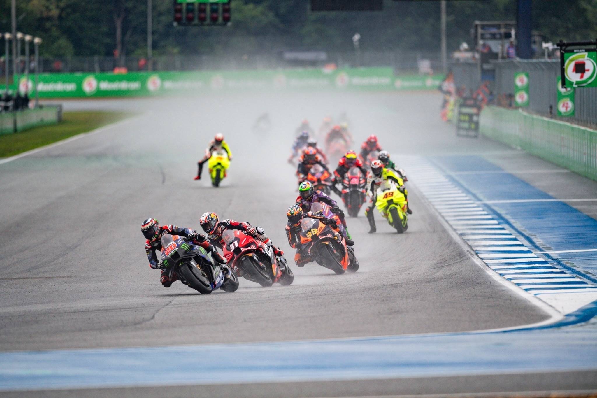 การแข่งขันรอบ “เมนกรังด์ปรีซ์” ของศึก พีที กรังด์ปรีซ์ ออฟ ไทยแลนด์ มีขึ้นเมื่อช่วงบ่ายวันอาทิตย์ที่ผ่านมา ซึ่งก่อนแข่งมีฝนตกลงมาส่งผลให้ต้องดวลกันในสภาพแทร็กเปียกตลอดทั้งเรซ โดย กวาร์ตาราโร นักบิดเฟรนช์แชมป์โลก 1 สมัย เจ้าของหมายเลข 20 ได้ออกตัวจากกริดที่ 6 ส่วน รินส์ ทีมเมทชาวสเแปนิช เจ้าของหมายเลข 42 เริ่มเกมจากกริดที่ 17