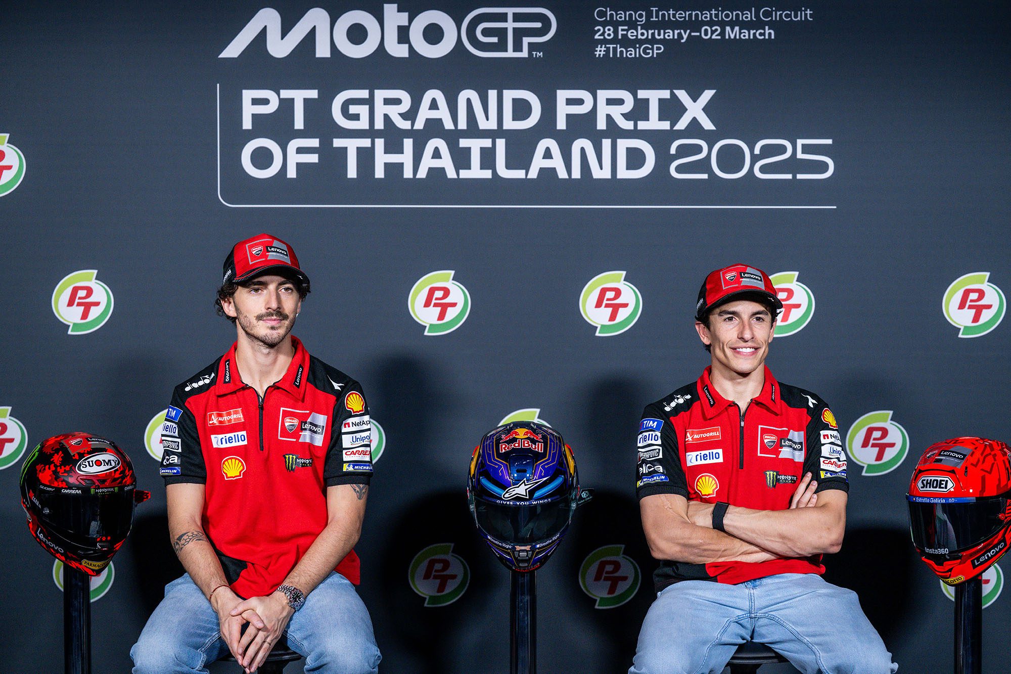 ไฮไลต์ของ พีที กรังด์ปรีซ์ ออฟ ไทยแลนด์ ในสุดสัปดาห์นี้ อยู่ที่การดวลความเร็วของนักบิดระดับพระกาฬของ โมโตจีพี นำโดย “มาร์ค มาร์เกซ” แชมป์โลก 8 สมัยชาวสแปนิชจาก ดูคาติ เลอโนโว ทีม และทีมเมทชาวอิตาเลียนอย่าง “ฟรานเชสโก้ บันยาญ่า” ที่มีดีกรีแชมป์โลก 3 สมัย โดยทั้งคู่ถูกยกให้เป็นเต็ง 1 และ 2 ในการคว้าแชมป์โลกปีนี้