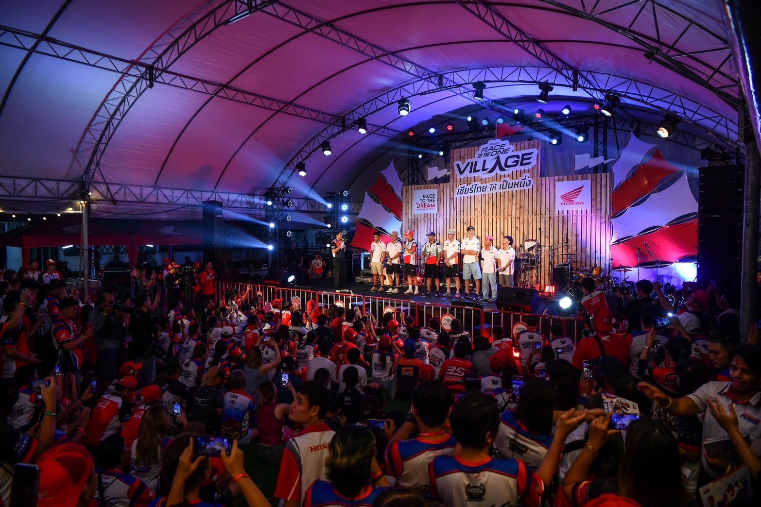 ในค่ำคืนนี้ ไทยฮอนด้า เปิดประสบการณ์ Race to The One สุดพิเศษในงาน Meet & Greet โดยไทยฮอนด้าได้พาคณะสื่อมวลชน และลูกค้ารถจักรยานยนต์ฮอนด้า จากทั่วประเทศมากระทบไหล่นักแข่งระดับโลก ทั้งนักแข่ง โมโตจีพี โมโตทู และโมโตทรีในฤดูกาลหน้าจากฮอนด้า อย่างใกล้ชิด ในรูปแบบมีตแอนด์กรี๊ด!!! พร้อมความสนุกแบบไร้ขีดจำกัดจากคอนเสิร์ตจากวง “มหาหิงค์” ให้เหล่าสมาชิกได้ร่วมสนุกสนานกันแบบสุดเหวี่ยง