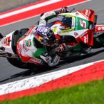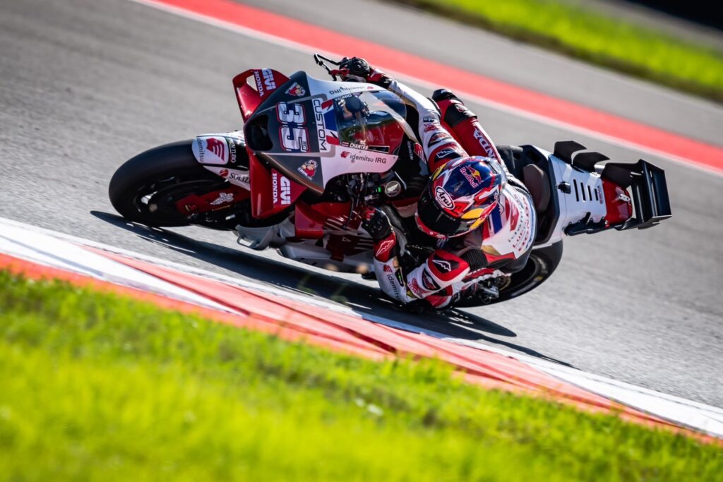 ขณะที่ “ก้อง” สมเกียรติ จันทรา นักบิดขวัญใจชาวไทยเจ้าของหมายเลข 35 จาก อิเดมิตสึ ฮอนด้า แอลซีอาร์ ที่เจอปัญหา “การยึดเกาะ” ของยางเล่นงานในวันเสาร์ ได้เริ่มเกมจากกริดที่ 19 ก่อนสร้างผลงานยอดเยี่ยมจะขยับขึ้นเข้าเส้นชัยในอันดับ 13 ตามหลังผู้ชนะ 48.035 วินาที เก็บเพิ่มอีก 3 แต้ม ส่วน “โยฮันน์ ซาร์โก” ทีมเมทชาวฝรั่งเศสหมายเลข 5 จบเรซอันดับ 12 ตามหลัง 27.597 วินาที