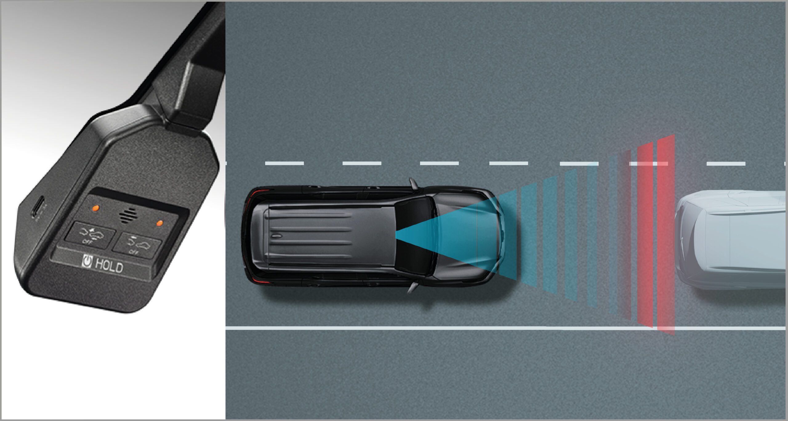 - ระบบเสียงเตือนที่มีไว้เพื่อช่วยให้ผู้ขับขี่รับรู้ถึงความเสี่ยงในการชนสิ่งกีดขวางด้านหน้า