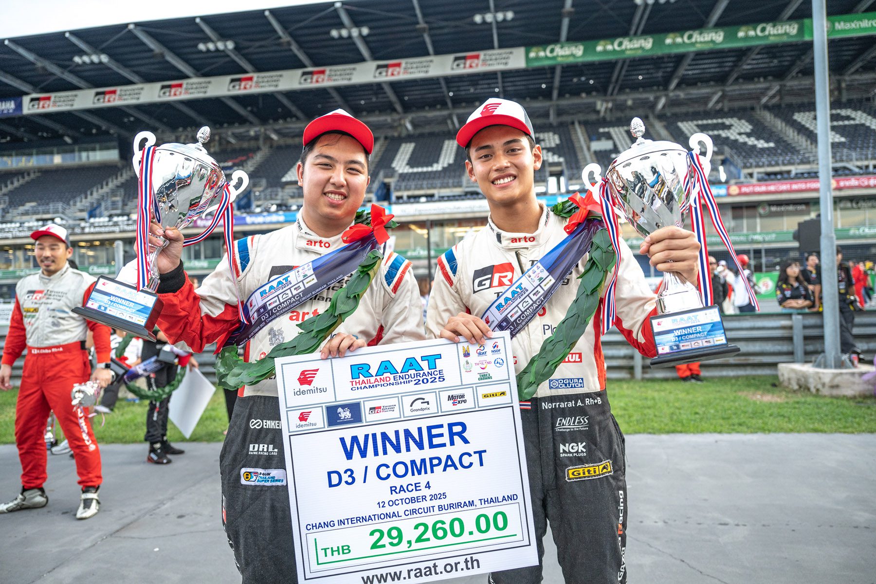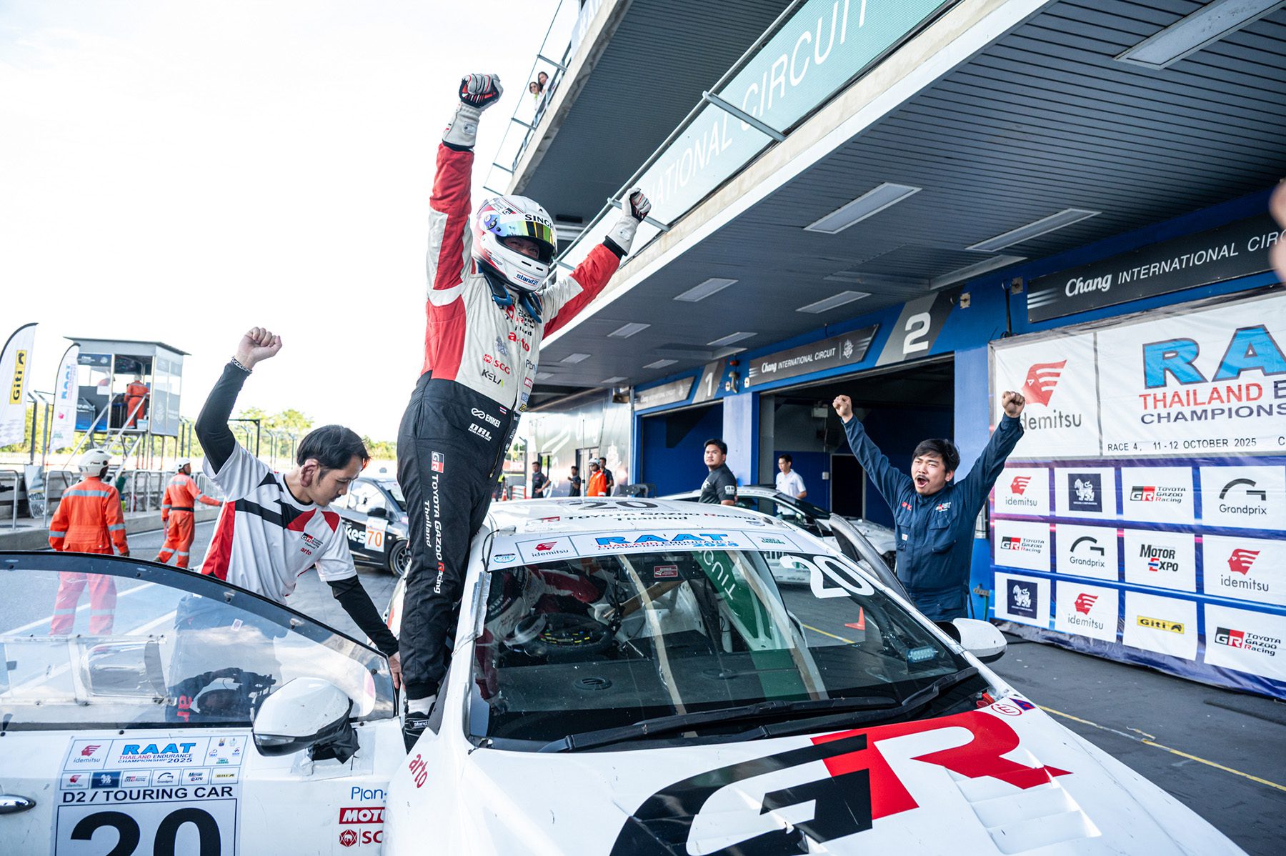 “TOYOTA GAZOO Racing Thailand” ทีมแข่งรถที่ยิ่งใหญ่และประสบความสำเร็จอย่างสูงของวงการมอเตอร์สปอร์ต ภายใต้การสนับสนุนของบริษัท โตโยต้า มอเตอร์ ประเทศไทย จำกัด ปิดฉากการแข่งขัน “RAAT Thailand Endurance Championship 2025” อย่างยิ่งใหญ่ หลังฝ่าด่านพิสูจน์ความแกร่งของทั้งรถและคนยาวนาน 8 ชม. จบสวยคว้าถ้วยอันดับ 1 ครองตำแหน่งแชมป์ประเทศไทยถ้วยพระราชทานฯ 4 ปีซ้อนไปแบบสมศักดิ์ศรี ในศึกสุดท้ายสนาม 4 ระหว่างวันที่ 11-12 ตุลาคม 2568 ณ สนามช้าง อินเตอร์เนชั่นแนล เซอร์กิต จ.บุรีรัมย์