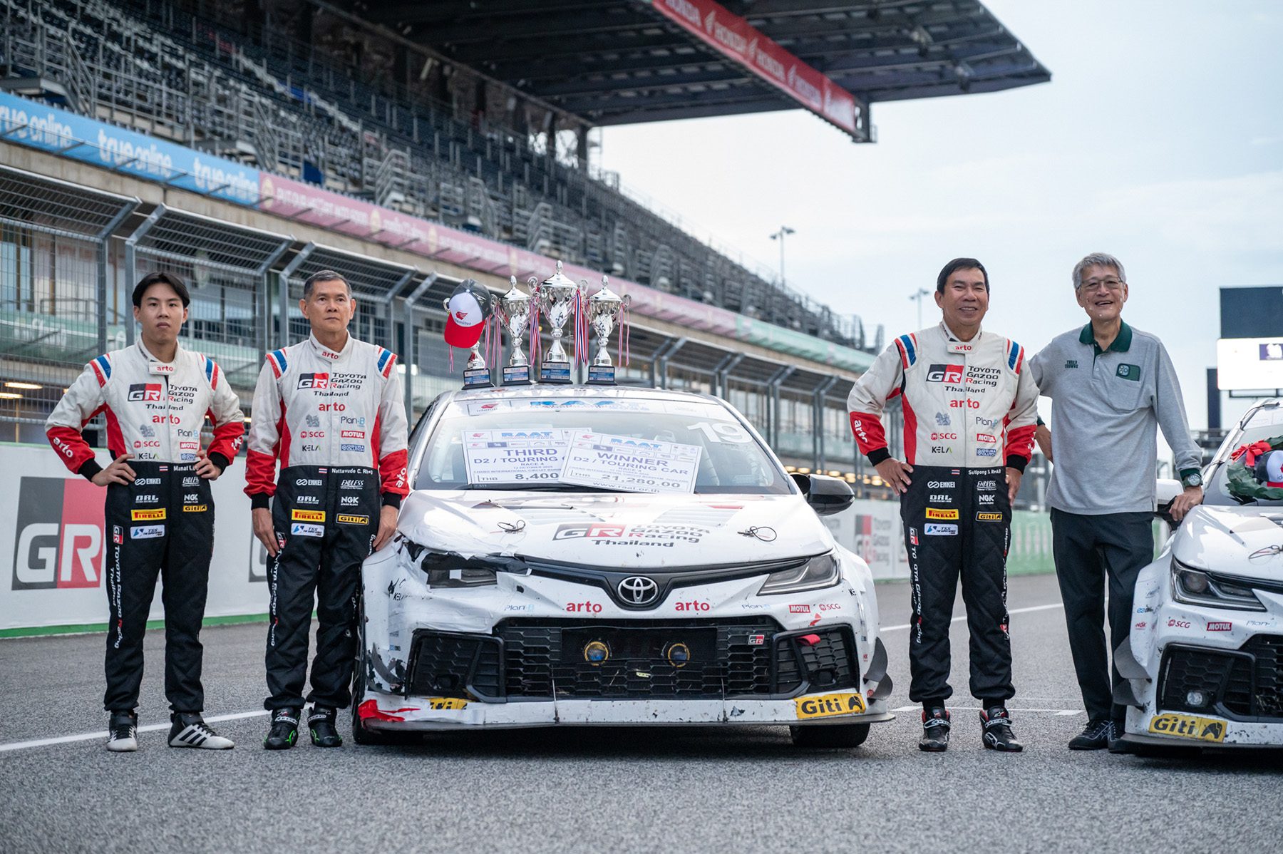 รุ่น D2 Touring Car ด้วยรถ Toyota Corolla Altis GR Sport รถหมายเลข 20 ขับโดย ณัฐพงษ์ ห่อทองคำ, กรัณฑ์ ศุภพงษ์ และ อัครพงษ์ อัคนีนิโรธ หวดกันไม่ยั้งใช้ทีมเวิร์คจบการแข่งขันคว้าอันดับ 1 ของทั้งรุ่นและแบบ Overall วิ่งรวม 234 รอบสนาม เป็นทั้งแชมป์สนามและรับแชมป์ประจำปีถ้วยพระราชทานฯ ไปครอง