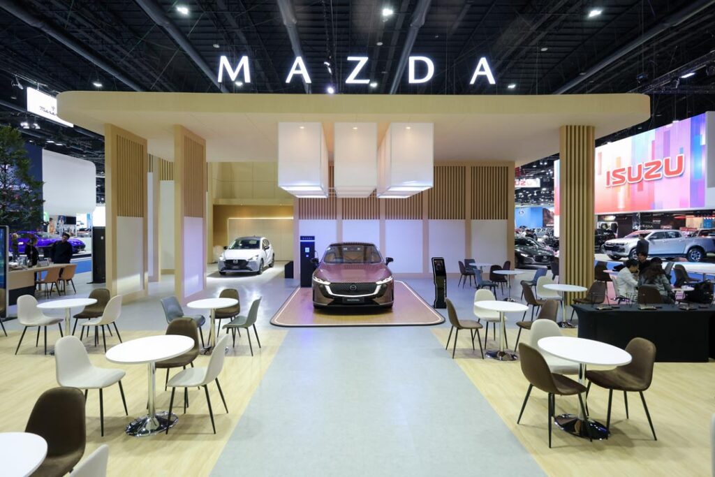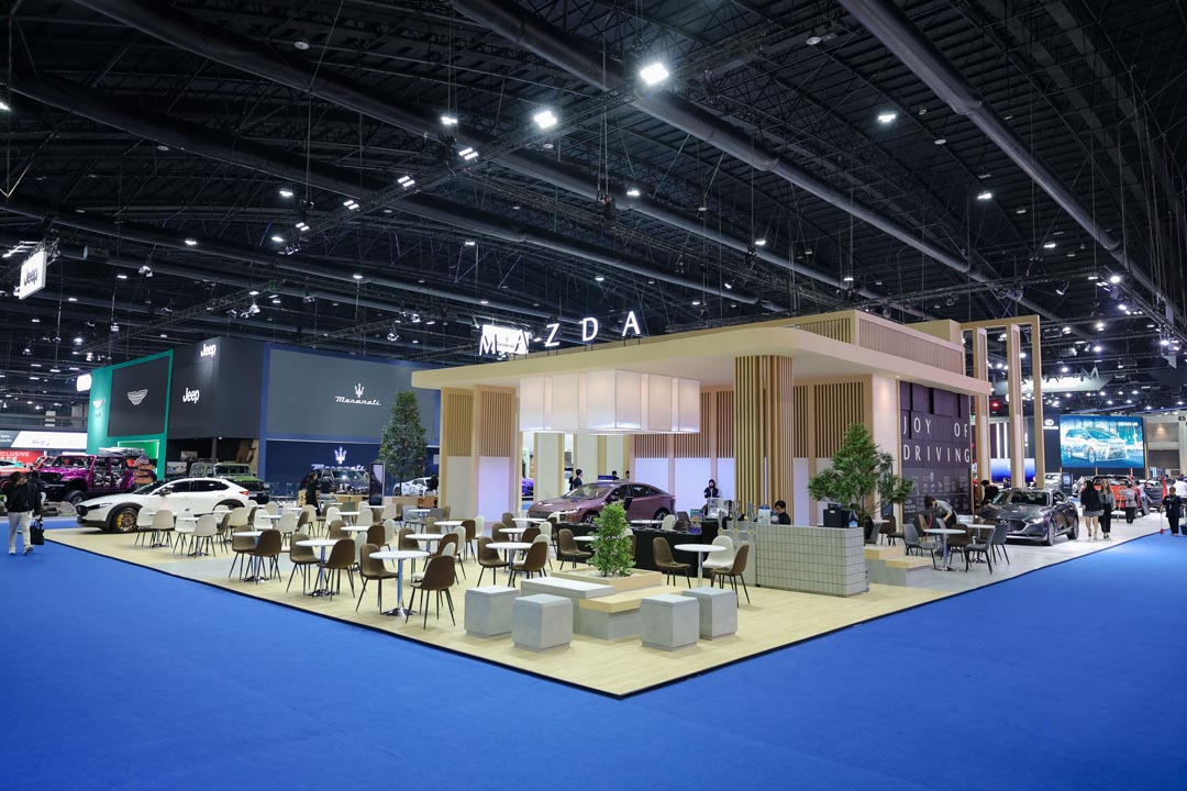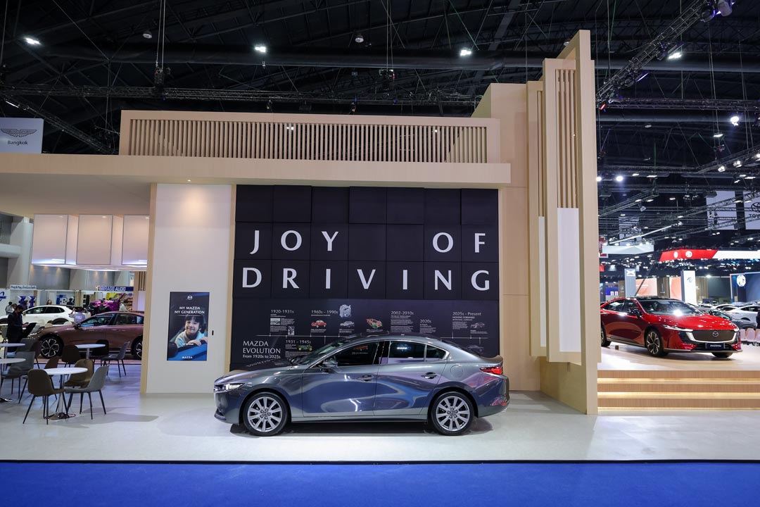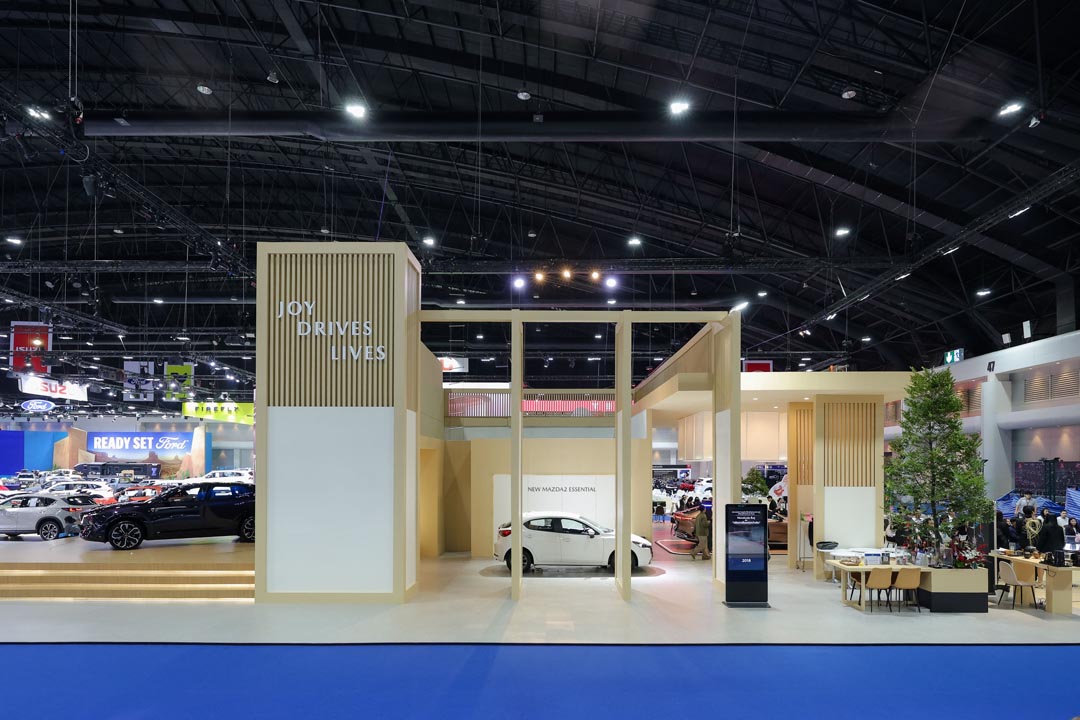 สำหรับการออกแบบบูธมาสด้าครั้งนี้ ได้ถ่ายทอดคอนเซ็ปต์ “Joy of Driving Creates a Richer Life” เพื่อถ่ายทอดปรัชญาแบรนด์ Joy Drives Lives เพราะมาสด้าเชื่อว่า “ความสุขในการขับขี่รถยนต์” (Joy of Driving) จะนำไปสู่ “ความสุขในการใช้ชีวิต” (Joy of Living) และมาสด้าตั้งใจส่งมอบความสุขเหล่านี้ไปยังลูกค้าทุกคน เพื่อให้ทุกวันขับเคลื่อนไปข้างหน้าด้วยรอยยิ้มและการใช้ชีวิตให้มีความหมาย มาสด้าได้เนรมิตพื้นที่ในบูธเป็น Experience Zone เพื่อให้ลูกค้าได้มาร่วมกิจกรรมความสุข นอกจากนี้ภายในบูธยังมีการจัดแสดงพื้นที่เพื่อบอกเล่าเรื่องราวของรถยนต์มาสด้า ที่มุ่งมั่นส่งมอบให้กับลูกค้ามาอย่างยาวนานจนถึงปัจจุบัน