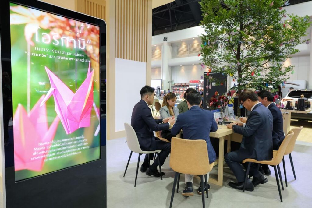 มาสด้าจัดงาน MAZDA6e VIP DAY เชิญลูกค้าสัมผัสประสบการณ์ใหม่ที่สะท้อนจิตวิญญาณของมาสด้า ผ่าน 3 กิจกรรมพิเศษกับ Experience Zone ณ บูธมาสด้า ในงาน มอเตอร์ โชว์ 2026 โดยเนรมิตพื้นที่จัดให้มีทั้ง “AI PHOTO BOOTH EXPERIENCE: บันทึกภาพที่ระลึกผ่าน Photo Booth AI”, “JAPANESE TEA CEREMONY EXPERIENCE: กิจกรรมชงชาแบบญี่ปุ่น” และ “ORIZURU WORKSHOP: กิจกรรมพับนกโอริซูรุ” สัญลักษณ์แห่งความหวังและสันติภาพ ที่มาสด้าจะส่งต่อไปยังฮิโรชิม่า ประเทศญี่ปุ่น เพื่อเป็นตัวแทนจากประเทศไทย โดยให้ลูกค้าได้ใช้เป็นพื้นที่พักผ่อนหย่อนใจและแชร์ประสบการณ์ความสุขความสุขร่วมกัน นอกจากนี้ มาสด้ายังมอบของที่ระลึกสุดเอ็กซ์คลูซีฟ Mazda6e Leather Phone Stand สำหรับลูกค้า 300 ท่านแรก ที่ลงทะเบียนเข้าร่วมงานในวันนี้อีกด้วย ซึ่งสิทธิพิเศษนี้ เป็นสิ่งที่มาสด้าตั้งใจมอบให้กับลูกค้า เพื่อสร้างสรรค์ประสบการณ์ความสุขให้กับทุกช่วงเวลาของชีวิตตามปรัชญาแบรนด์ “Joy Drives Lives” ที่มาสด้ามุ่งมั่นเสมอมา