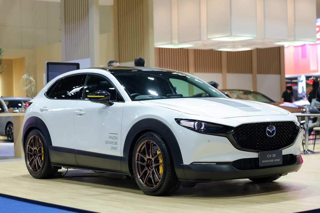 ไม่เพียงเท่านี้ มาสด้ายังได้นำยนตรกรรม New Mazda CX-30 Signature Spirit รุ่นตกแต่งพิเศษ ที่ถ่ายทอดจิตวิญญาณความสปอร์ต สะท้อนตัวตนผ่านดีไซน์และสมรรถนะความสปอร์ต มาจัดแสดงภายในงาน เพื่อสร้างแรงบันดาลใจให้กับลูกค้าที่ชื่นชอบการแต่งรถ ควบคู่กับการนำรถยนต์ทุกรุ่น ทั้งรถยนต์นั่ง ครอสโอเวอร์เอสยูวี CX-Series และ ปิกอัพ มาจัดแสดง พร้อมมอบแคมเปญพิเศษมากมาย ทั้งส่วนลดสูงสุด 130,000 บาท ดอกเบี้ยต่ำสุด 0% นานสูงสุด 60 เดือน ฟรีประกันภัยชั้น 1 ฟรีโปรแกรมคุ้มครองและดูแลรถ Mazda Ultimate Service (MUS) นานสูงสุด 7 ปี ฟรีขยายการรับประกันคุณภาพเป็น 5 ปี หรือ 150,000 กม. ฟรีของพรีเมี่ยมสุดพิเศษจากมาสด้า และพิเศษสำหรับลูกค้า Mazda Family และครอบครัว มาสด้ายังมอบบัตรน้ำมันมูลค่าสูงสุดอีก 20,000 บาท