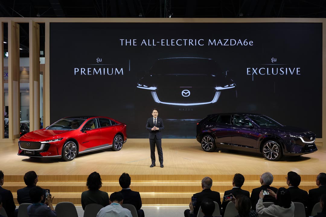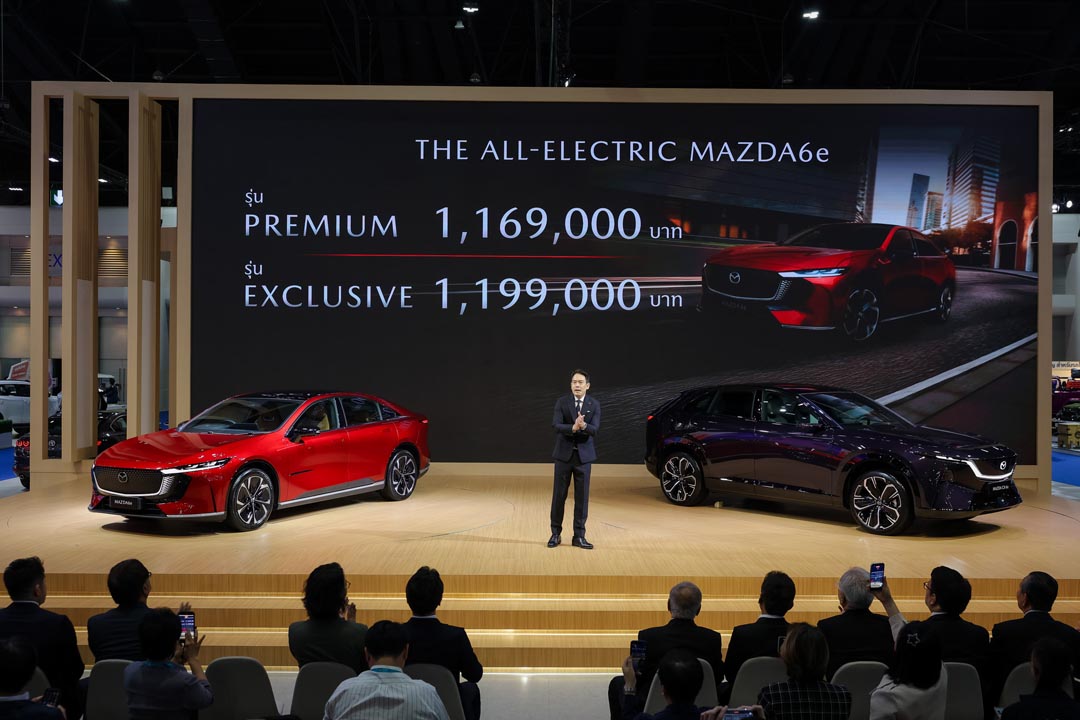 สำหรับในงาน มอเตอร์ โชว์ 2026 นอกจากมาสด้าจะได้นำยนตรกรรมเอสยูวีแห่งอนาคต The All-New Mazda CX-6e ที่พัฒนาภายใต้กลยุทธ์ Multi-solution มาให้ลูกค้าได้สัมผัสอย่างใกล้ชิดเป็นครั้งแรกในอาเซียน กับ ASEAN Premiere มาสด้ายังได้เปิดตัว The All-Electric Mazda6e ยนตรกรรมไฟฟ้ารุ่นแรกจากมาสด้าในประเทศไทย ที่มีให้เลือกทั้งหมด 2 รุ่น ได้แก่ รุ่น Premium ราคาจำหน่าย 1,169,000 ล้านบาท และรุ่น Exclusive ราคาจำหน่าย 1,199,000 ล้านบาท พร้อมมอบข้อเสนอ