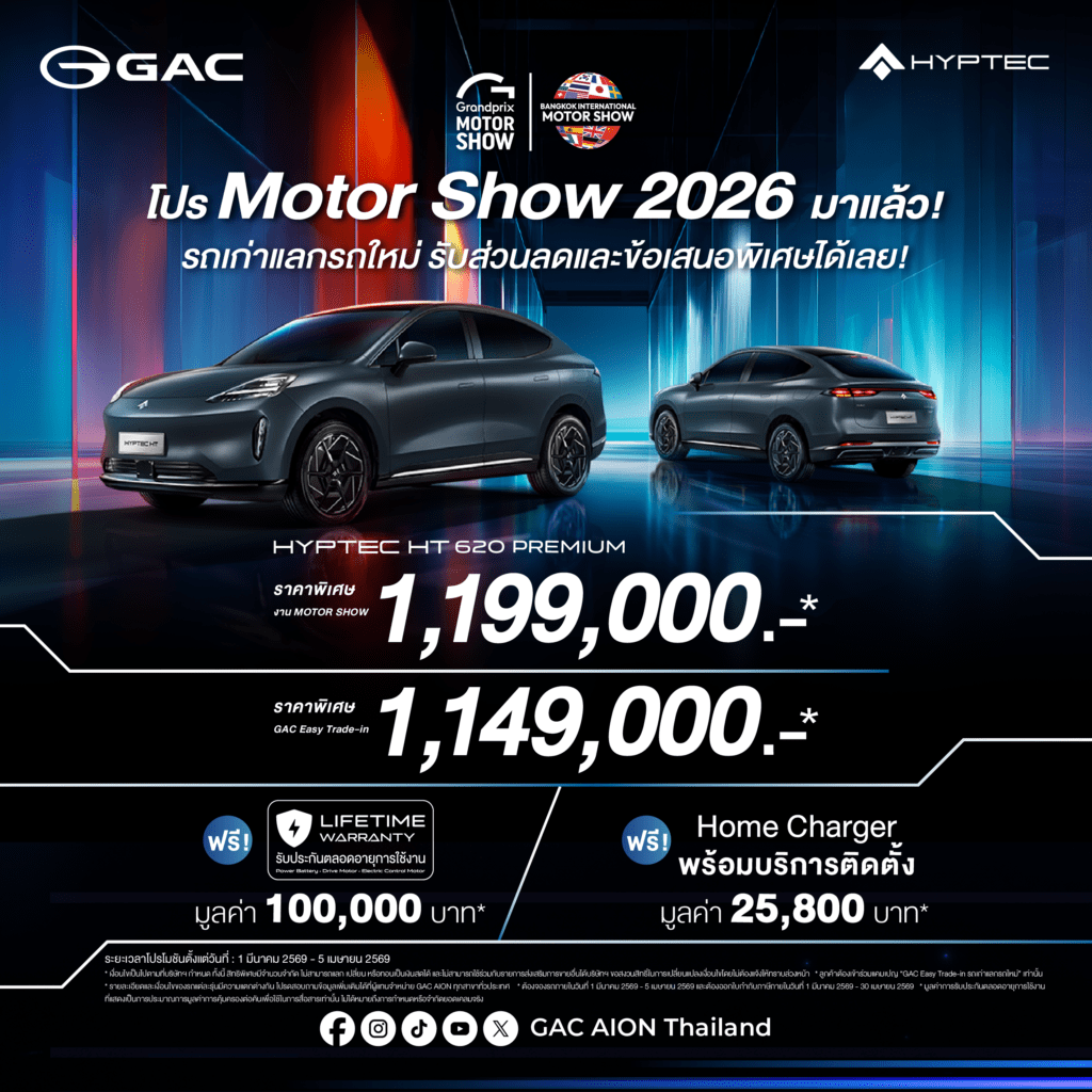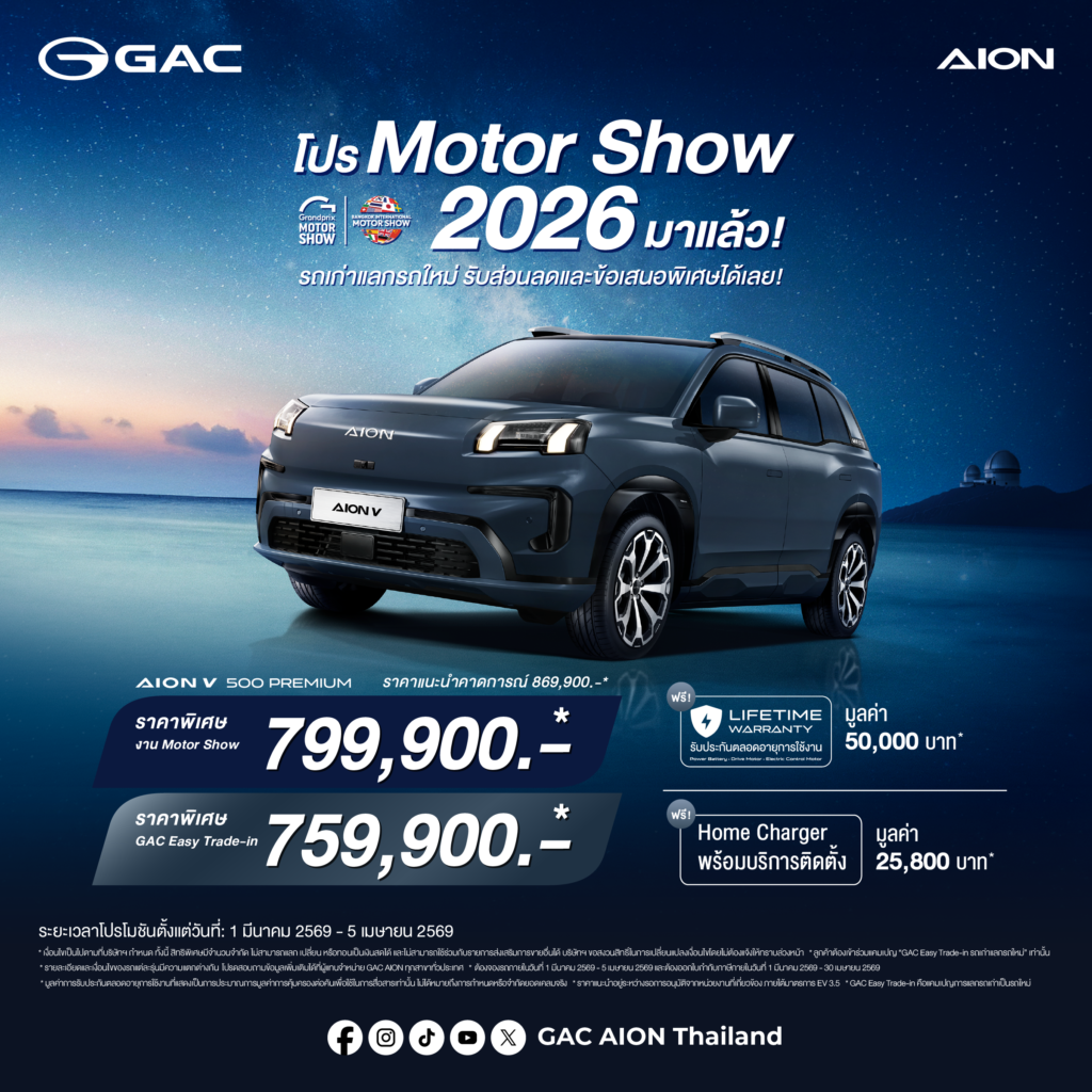 GAC AION เดินหน้ากลยุทธ์ Thailand Action 2.0 ในงาน Motor Show 2026 พร้อมแคมเปญครบทุกไลน์อัพ และ GAC Easy Trade-in มอบส่วนลดสูงสุด 150,000 บาท